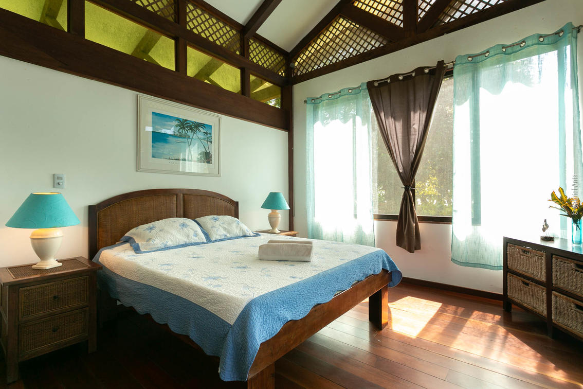 One queen-size double bed, fan, shower room (hot water, amenities), toilets, wi-fi (fiber optics), security safe. Beach view, large terrace.