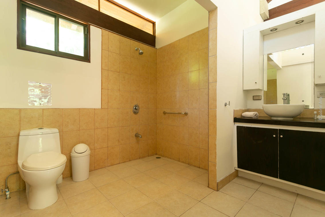 Living room with a fully equipped kitchen (refrigerator/freezer, electric oven, microwave, gas stove, coffee maker, toaster, rice cooker, blender, iron and ironing board...) and fans, a bedroom with a double queen bed (fan), a bedroom with 2 single beds (fan), 2 shower rooms (hot water, amenities), 2 toilets, 2 closets. Terrace with sofas, hammock. wi-fi (fiber optic), security safe, alarm.