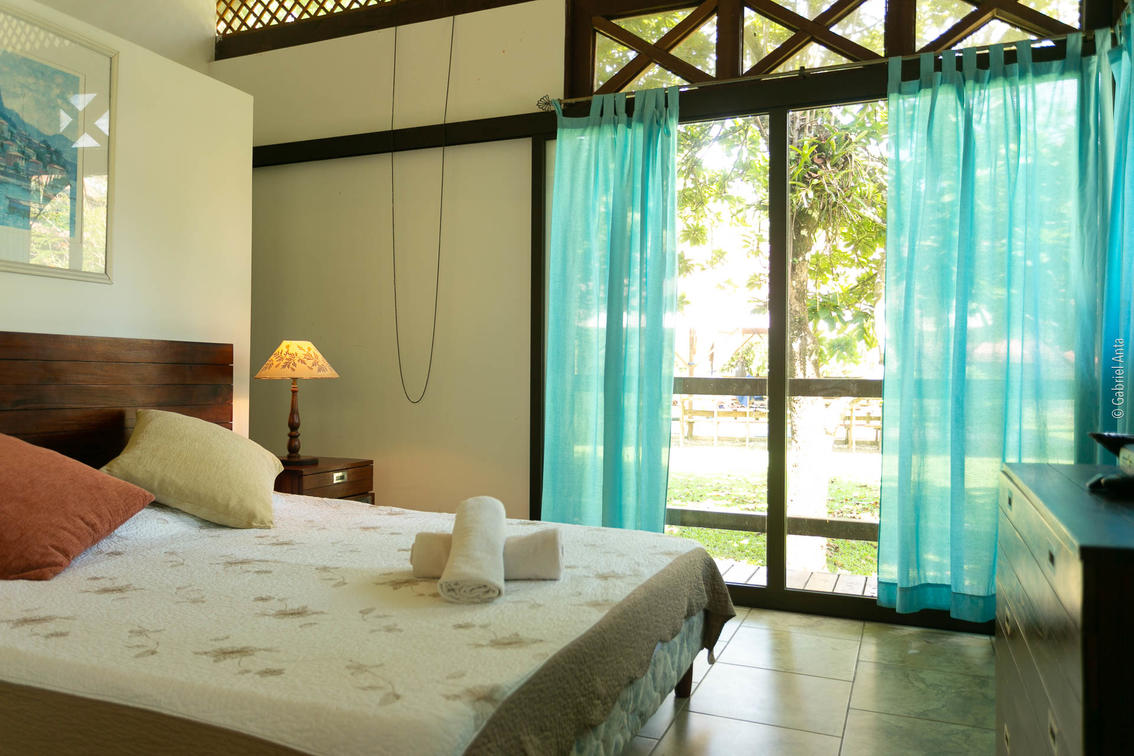 Living room with a fully equipped kitchen (refrigerator/freezer, electric oven, microwave, gas stove, coffee maker, toaster, rice cooker, blender, iron and ironing board...) and fans, a bedroom with a double full-size bed (fan), bathroom with shower (hot water, amenities, toilets), closet. Terrace with sofas, hammock. wi-fi (fiber optic), security safe, alarm.