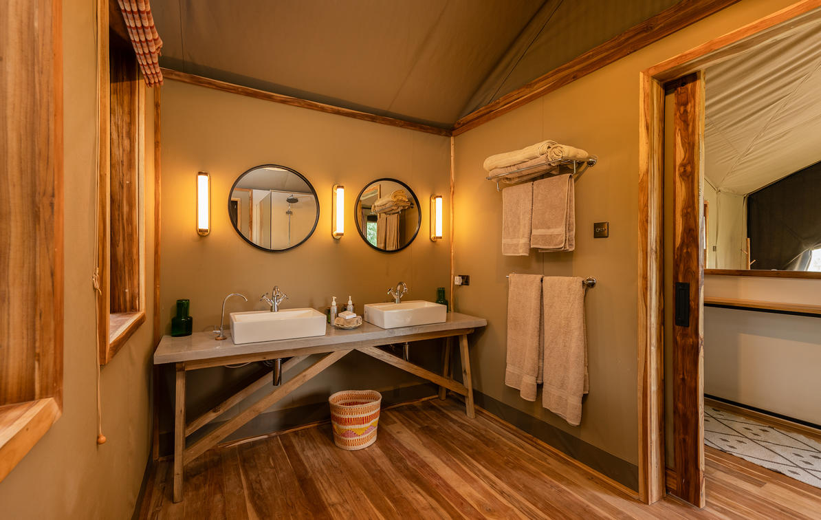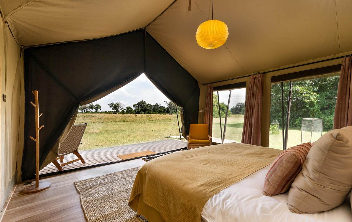 The camp is situated in the heart of the Masai Mara's prime game-viewing area. There are 19 "classic safari tents" (twins and doubles), all facing onto the Mara River. The tents are large, bright, and allow plenty of natural light. All the tents have been designed in the classic safari style, each with en-suite bathrooms and a private verandah.