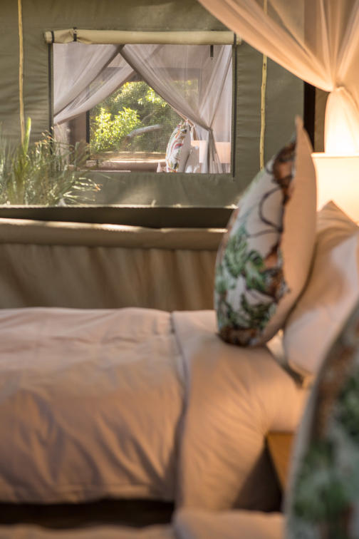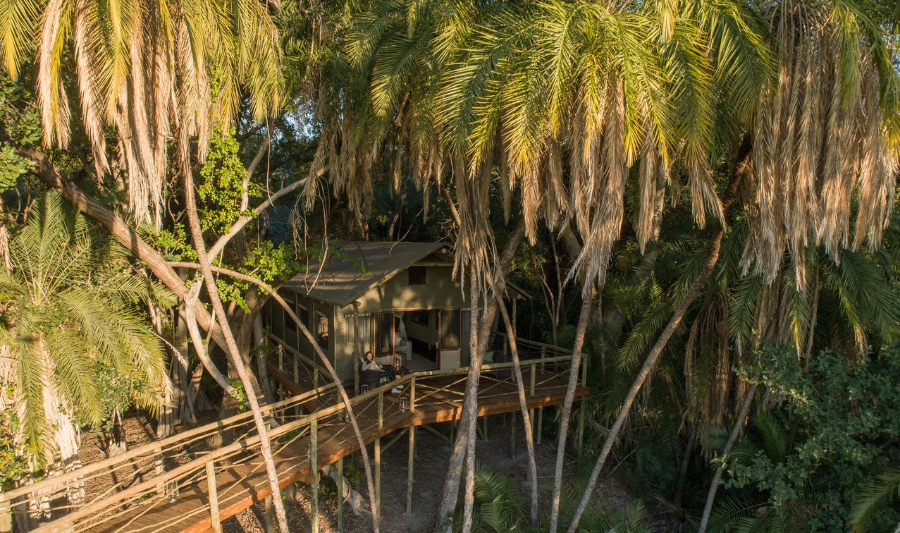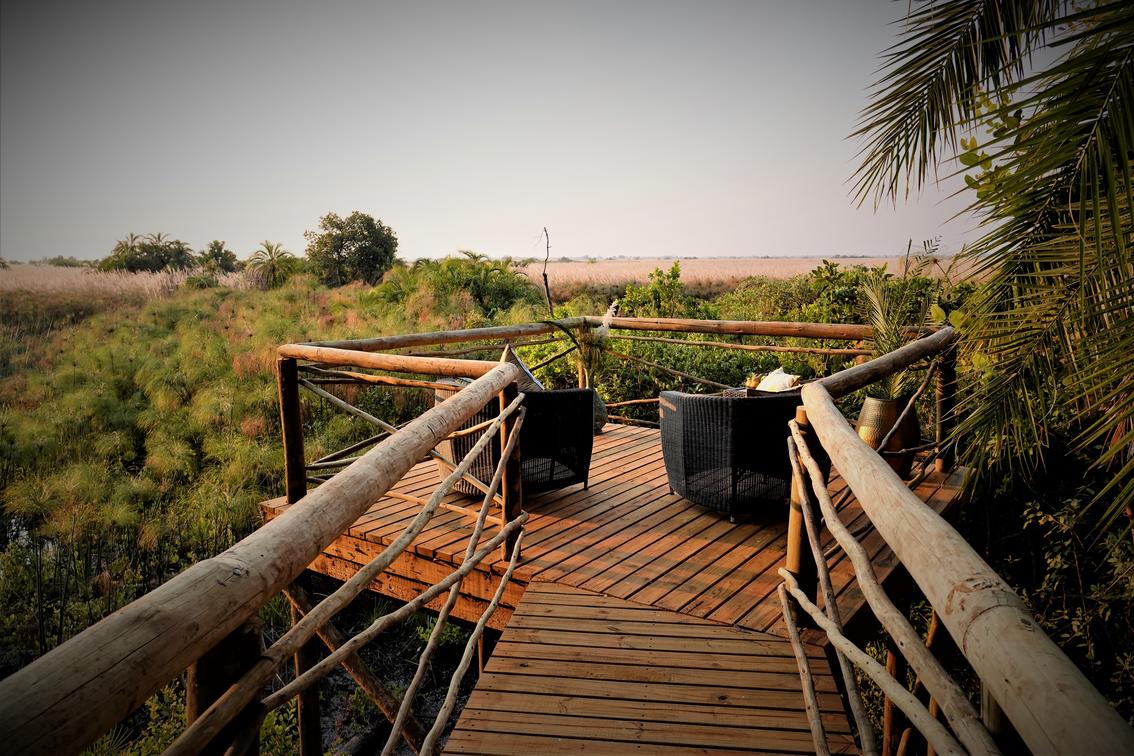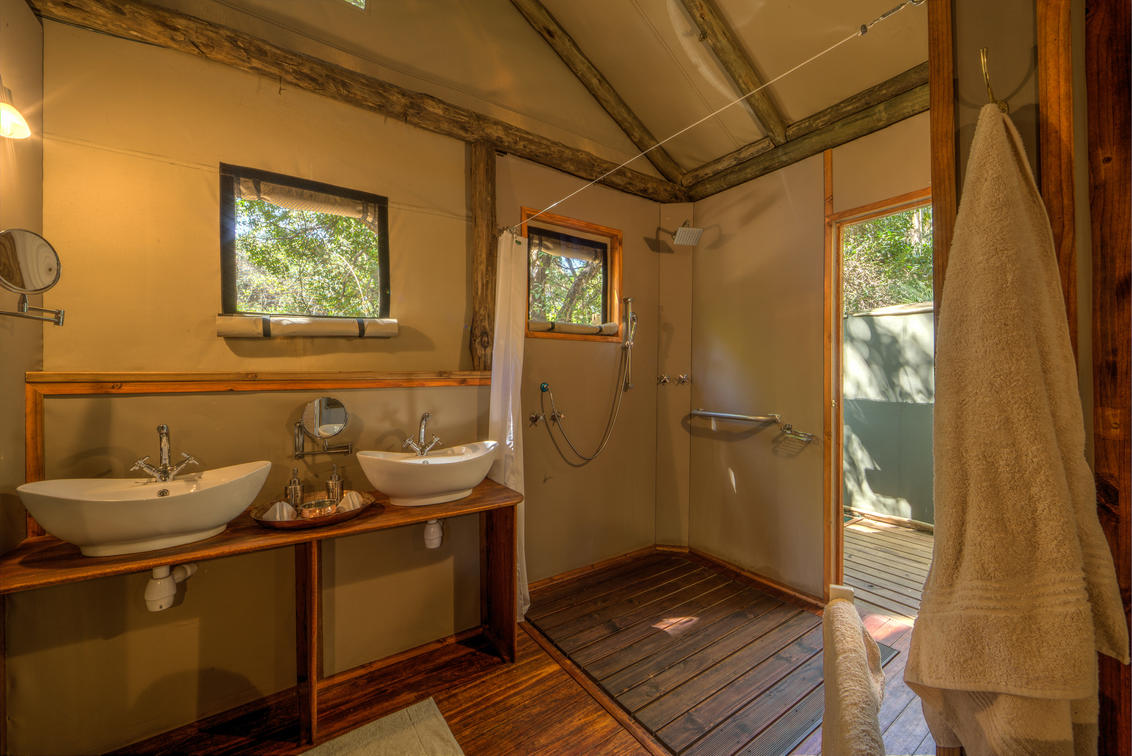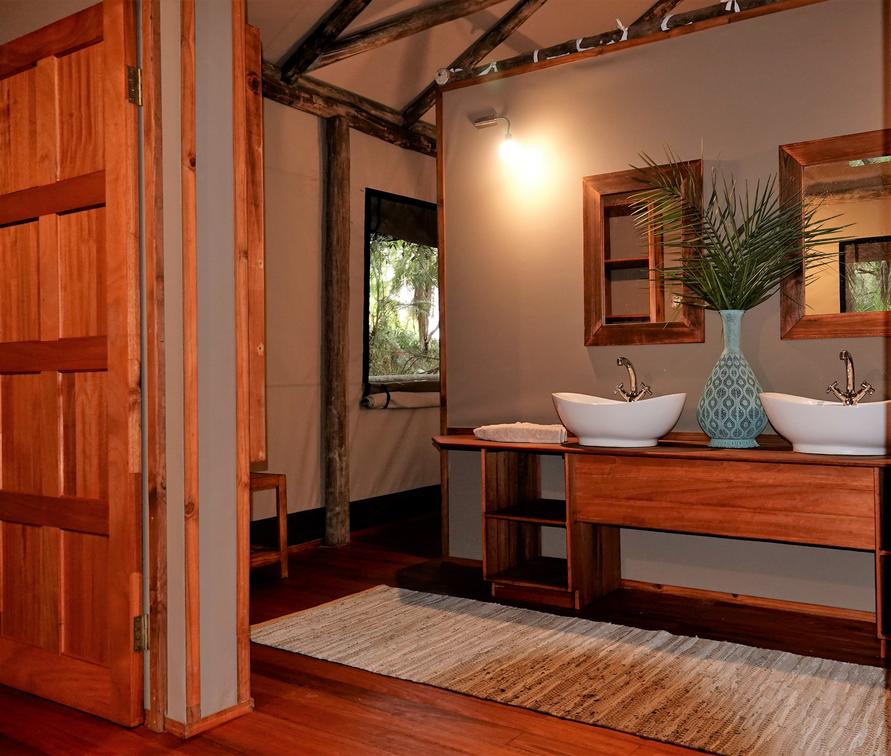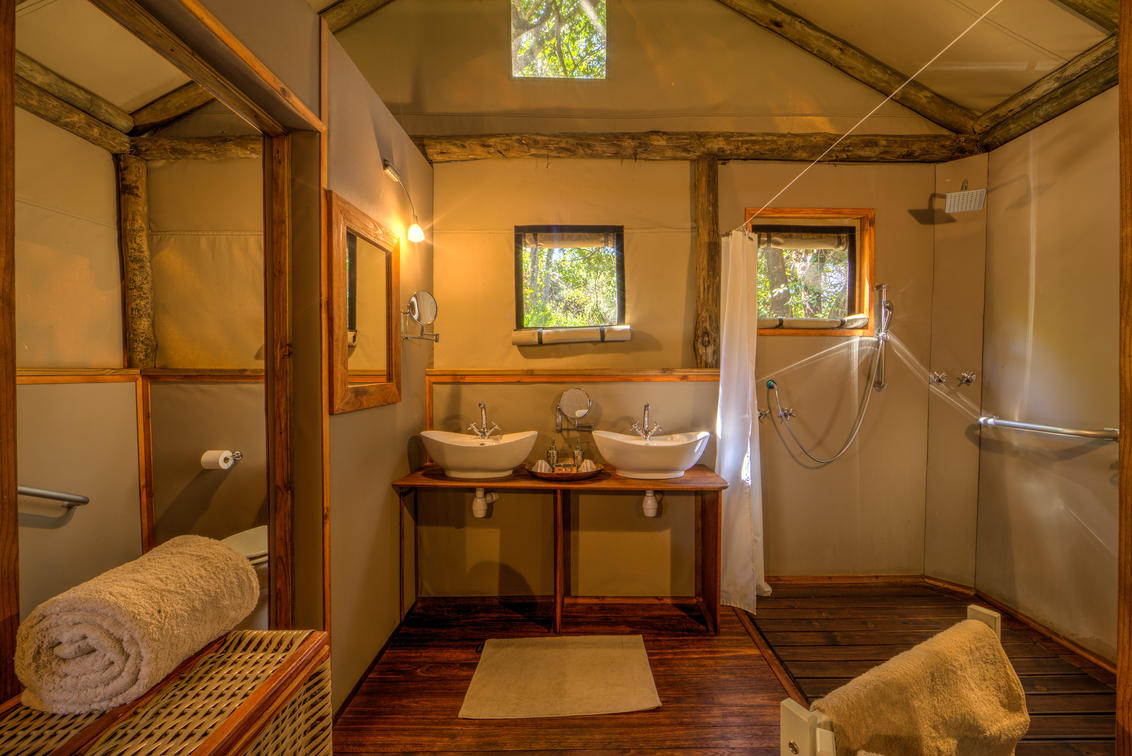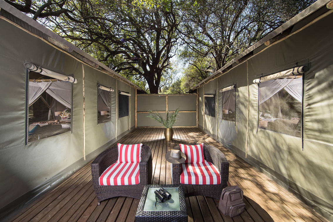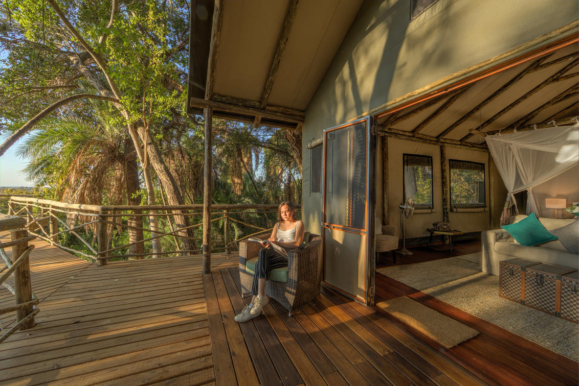 There are 8 standard light and airy tented 'suites'. Each of the tents are elevated on stilts and accessed via wooden walkways and private decks with superb views from which to watch the sunset with a G & T! The tents can all be made into doubles or twins and have comfy sofas, fan, mosquito net, armchairs, safes, desks and en-suite bathrooms. Each bathroom has a free-standing bath, shower, loo and outside shower-with-a-view. The beds are all extra length and when made into a double, are super king size.