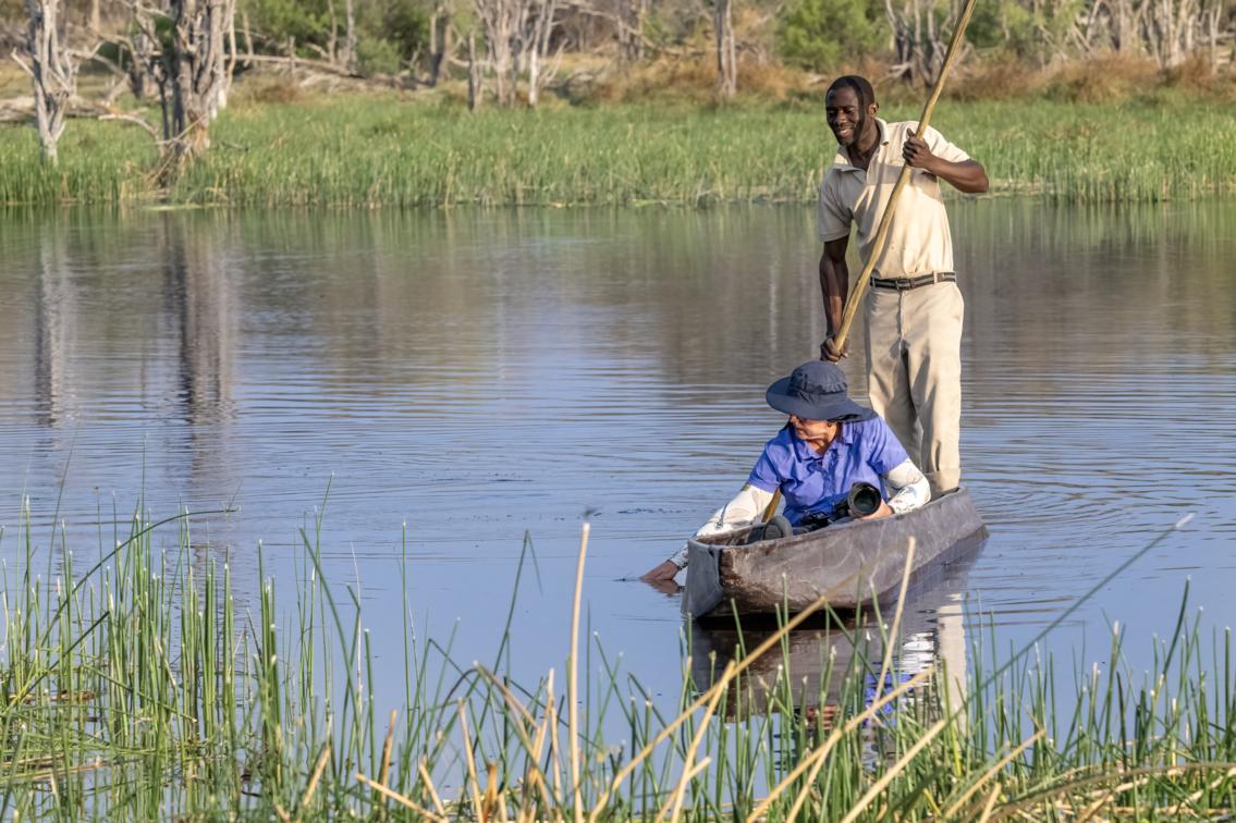 Mokoro excursions, available when water levels are ideal, provide a tranquil and intimate way to explore the Delta’s seasonal floodplains. Traditionally crafted from wood, modern fiberglass mokoros preserve the distinctive shape and silent glide of their wooden predecessors, ensuring minimal environmental impact. As you gently navigate winding channels and serene lagoons, you’ll uncover a quieter, more hidden side of the wilderness—perfect for observing aquatic birds, colorful reed frogs, and a variety of water-dwelling creatures. This activity is particularly enchanting during the peak flood season when the Delta is at its most lush and navigable, offering a truly immersive experience in one of Africa's most pristine ecosystems.