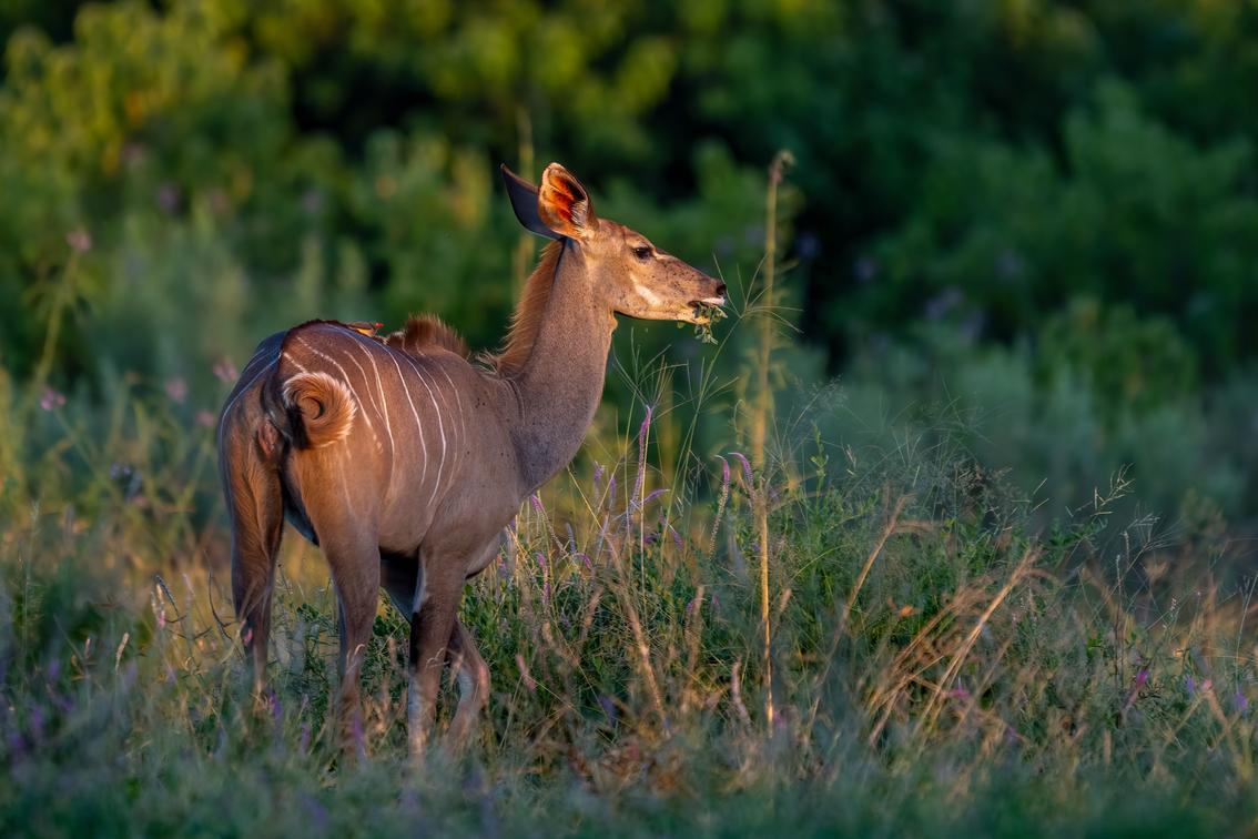 Guests travel into the NG35 concession, taking advantage of the cooler temperatures and soft morning light. They explore a mosaic of habitats—from open grasslands and mopane woodlands to riverine forests, seasonal floodplains, and permanent watercourses. This diversity of vegetation and water brings an impressive variety of wildlife, making the area one of the very best for game viewing.