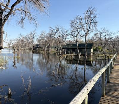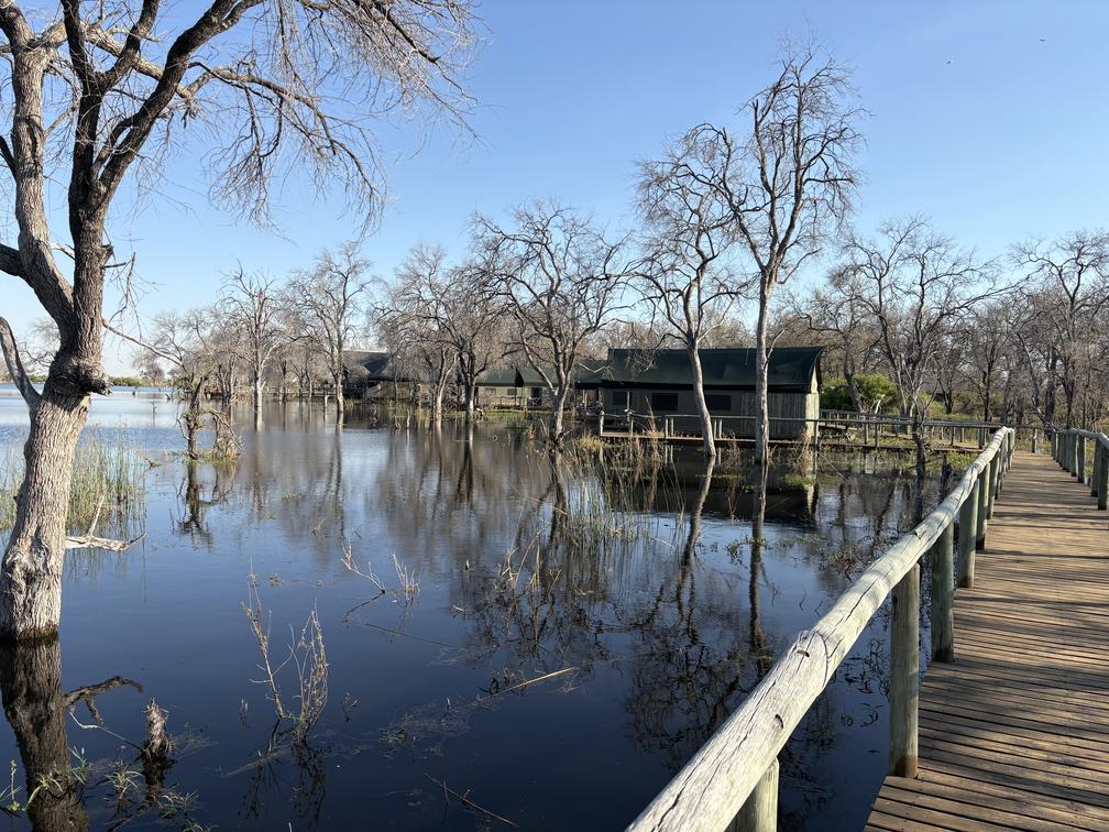 The tented suites are thoughtfully designed to offer both comfort and immersion in nature. Each tent is elevated on wooden decks, providing sweeping views over the Gomoti lagoon . During the dry winter months, water "floods" beneath the tents, creating a magical “floating” effect. This vantage point turns your verandah into a private hide, with the sights and sounds of the Delta's wildlife just metres away.