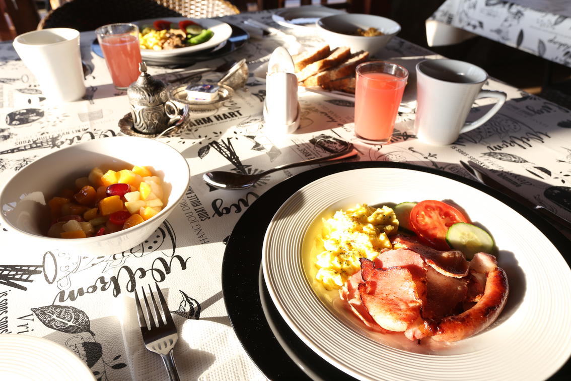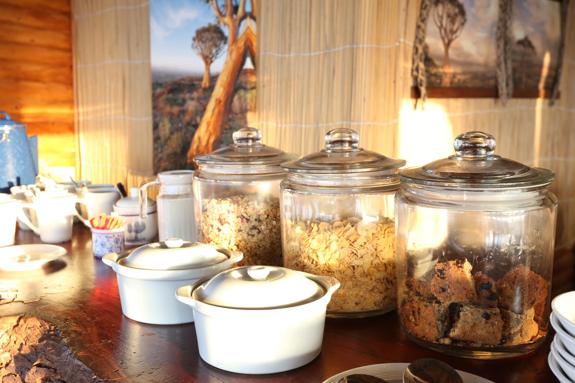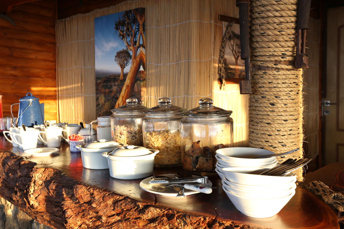 The restaurant is located at the foot of the Habuab mountain, with a panoramic view of the Gaub Valley. The building was constructed to emphasise the vast beauty of the thousands of hills in the valley. The interior has a comfortable rustic feel, with breakfast, lunch and dinner served from a set menu. A buffet setting can be arranged for groups with 10 people or more. There is a bar adjacent to the restaurant, as well as a lounge to relax in.