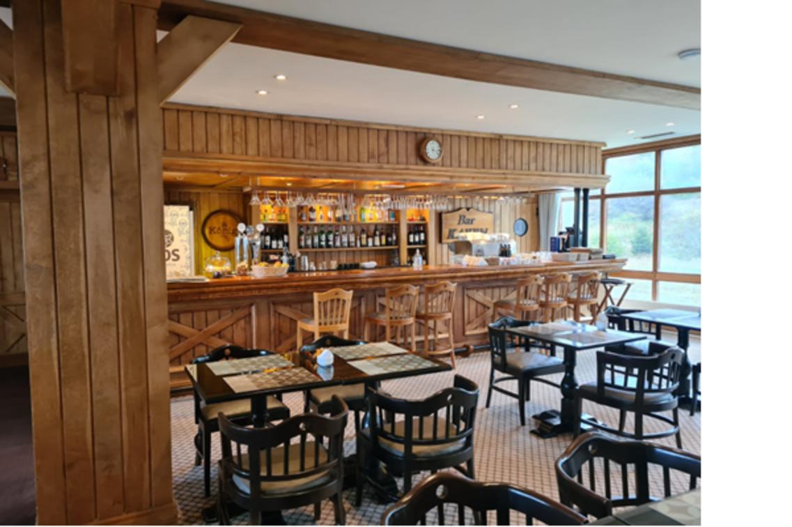 The Kayen Bar has a large wooden bar, wooden and leather tables and chairs, large windows with mountain views. Our bar at night lends itself to having an after party and thus sharing exquisite drinks, some of them with a local touch, such as the Calafate Sour, whiskey or draft beer.