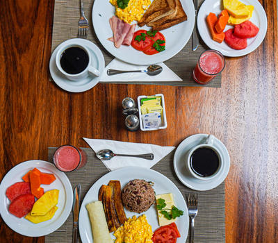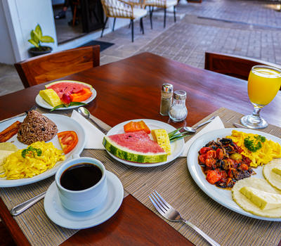 Wake up to the rich aromas and vibrant tastes of a traditional Costa Rican breakfast in our inviting Breakfast Area. Every morning, we serve a delicious selection made with fresh, locally sourced ingredients that highlight the best of our region’s culinary heritage. From gallo pinto to tropical fruits and rich Costa Rican coffee, our breakfast is a celebration of flavor and freshness.