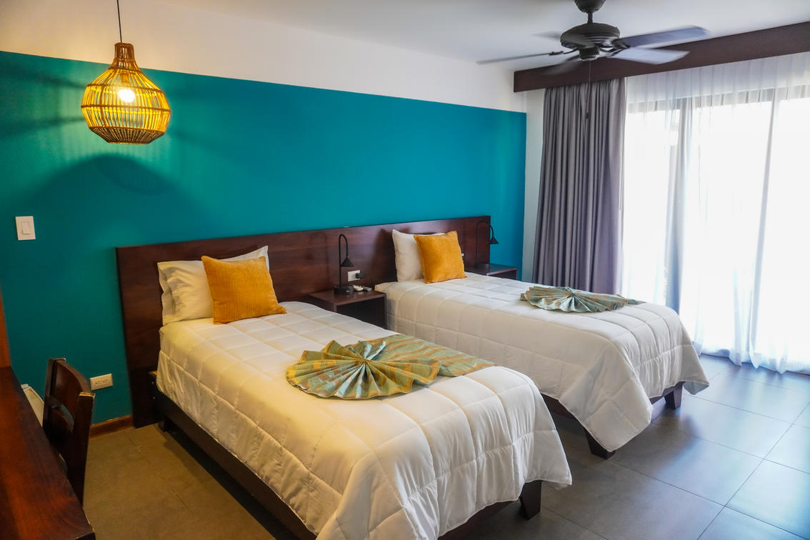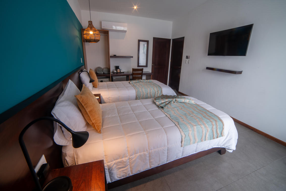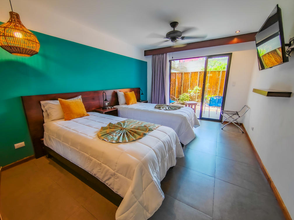 Our Premium Volcano View  feature a comfortable twin beds, private bathroom with hot water, AC, ceiling fans, custom built furniture, 40” TV with Apple TV and Netflix access, safety box, mini-fridge and coffee maker with all the fixings provided. Reliable high-speed Wi-Fi service is included in the rate and available throughout the property, and daily cleaning service provided. Breakfast is included.