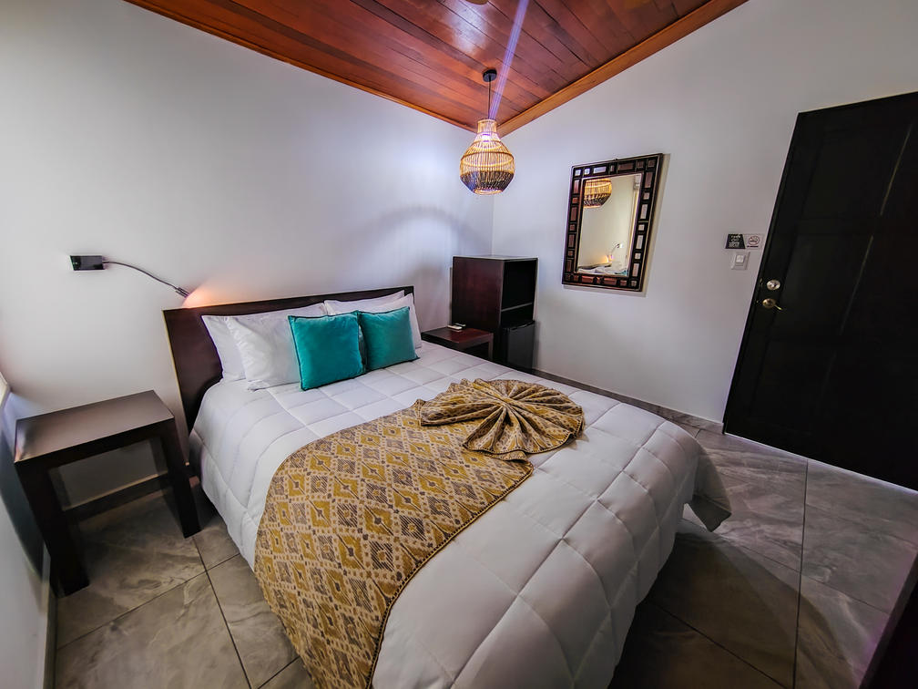 Our Premium Volcano View  feature a comfortable King-size bed or 2 twin beds, private bathroom with hot water, AC, ceiling fans, custom built furniture, 40” TV with Apple TV and Netflix access, safety box, mini-fridge and coffee maker with all the fixings provided. Reliable high-speed Wi-Fi service is included in the rate and available throughout the property, and daily cleaning service provided. Breakfast is included.