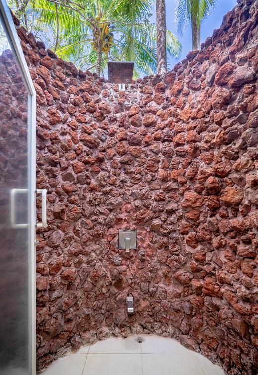 of our 229 ft2 | 70m2 room, where you can enjoy a bath lined with volcanic stone with an outdoor shower. From the spacious terrace, relax in a comfortable hammock overlooking the lush garden and indulge in an unforgettable stay in perfect harmony with nature.