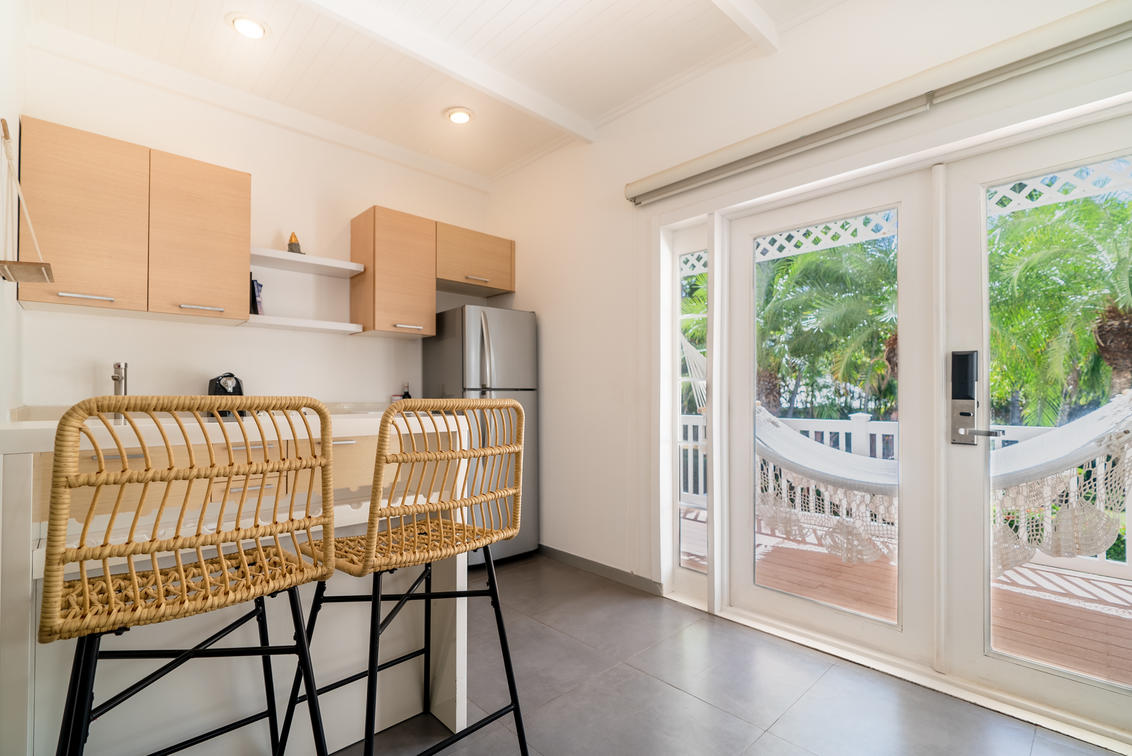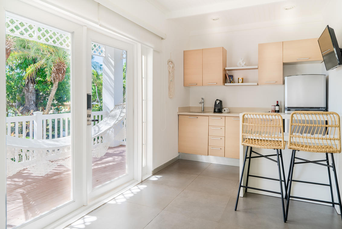 Located on the first floor, just five stairs above ground level, let nature embrace you in our229 ft2 |70m2 room that invites you to live an experience full of peace and comfort. Enjoy the terrace area facing our beautiful garden, where you can immerse yourself in the greenery of our plants and breathe serenity. Get some rest in our terrace hammock, letting the subtle swinging transport you to a state of pure calm. It offers two Queen Size beds.. One unit is fully equipped with accessible features designed for guests with mobility needs, ensuring a comfortable and convenient stay.