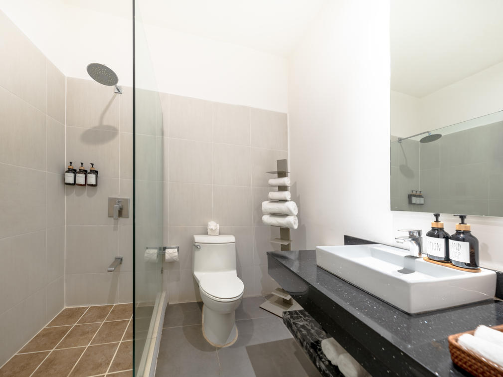 Located on the first floor, just five stairs above ground level, with its generous 229 ft2 | 70m2 and an enviable location, let yourself be captivated by its exquisite bathroom lined with volcanic stone with an outdoor shower, where you can immerse yourself in an oasis of relaxation and connection with nature. Enjoy a spacious private terrace while marveling at the panoramic views of the vast ocean