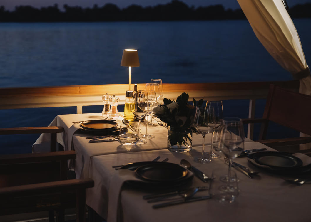 Our Dinner Cruise offers everything and more. Not only the magical colors of the Zambezi River at dusk but a truly unique four-course dinner served as you savor the splendor of the setting sun. Ideal for food and nature lovers wanting it all. Embark from the Pure Africa Waterfront and head off into the evening. After your favorite drink is poured, you’ll be ushered to your set table where a delectable series of dishes freshly prepared on the boat and paired to premium drinks including our own Pure Africa house wines are served. Silhouettes of elephants against the sunset and hippos noisily grunting in the distance will most certainly add to the ambience.