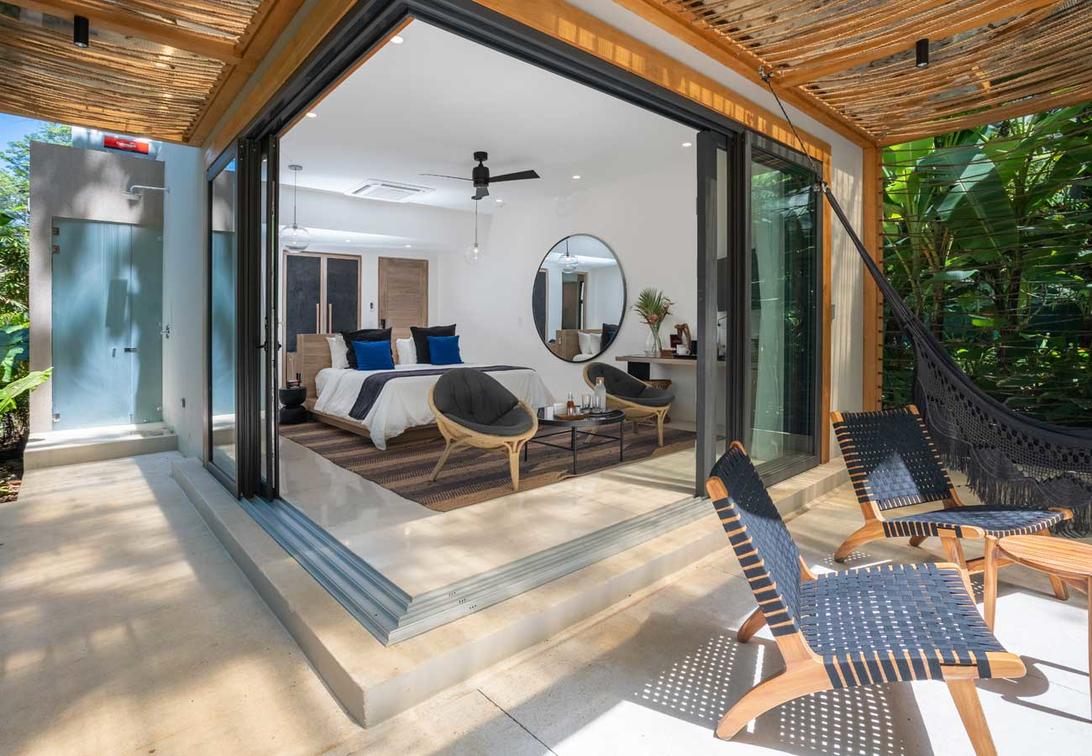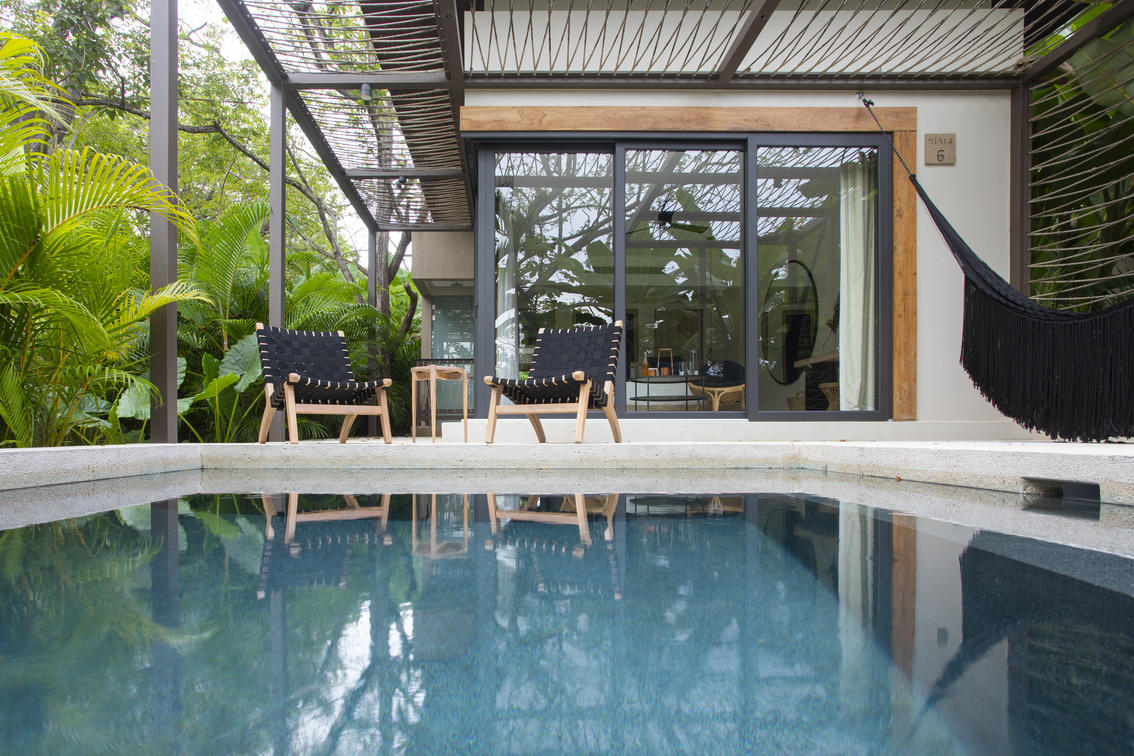 “Ninta” is the Chorotegan word for “beach”, and the inspiration behind our sleek units designed to make your beachfront experience as vivid as possible. The Ninta bungalows are made up of 80 square meters (800 square feet) of luxury space including an ample terrace, a private 3.5 x 3.5 meter (10 x 10 ft) plunge pool, hammock, king bed and double indoor/outdoor shower. Our floor to ceiling glass doors open to ocean views, making Ninta ideal for a memorable honeymoon or just a romantic getaway surrounded by raw nature and the hypnotic sound of the ocean.