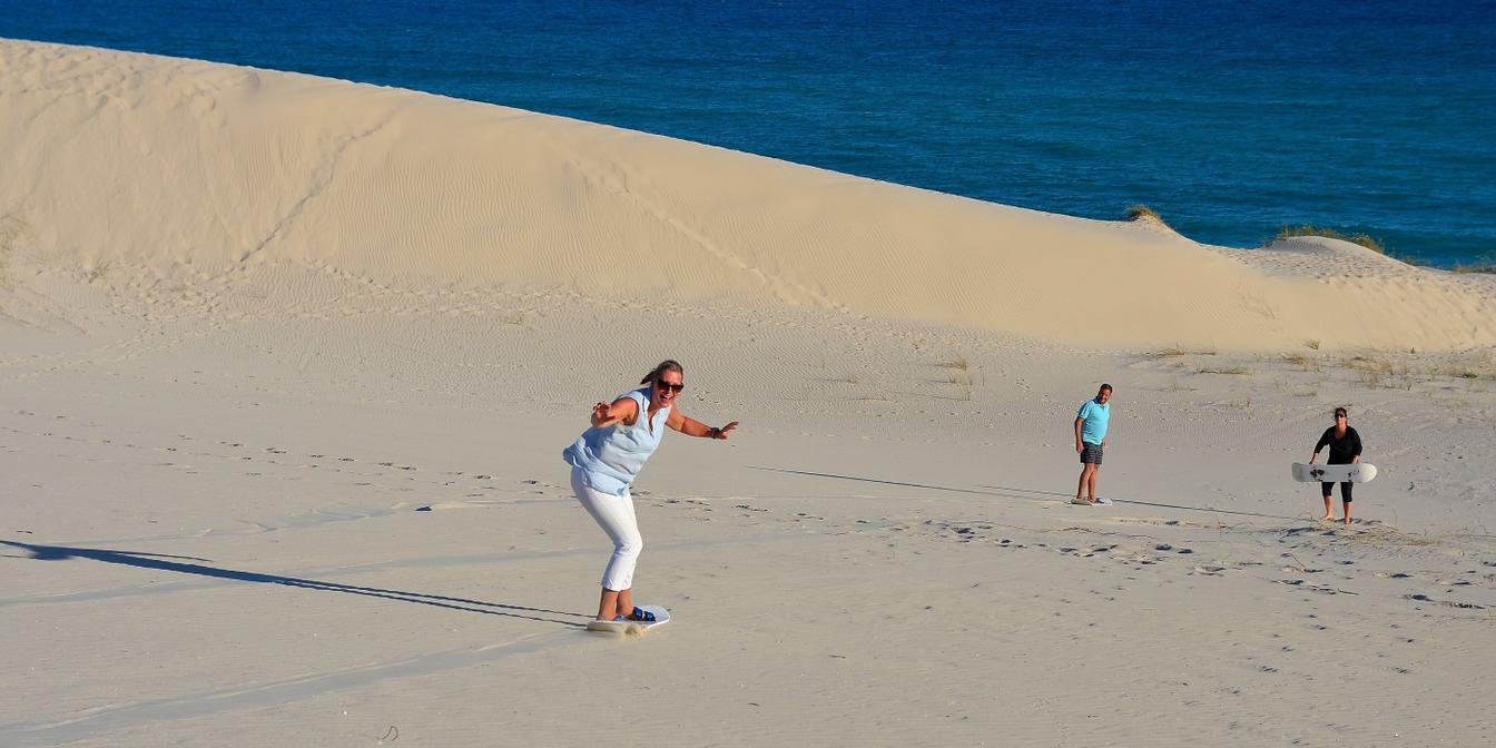The amazing white sand dunes of the De Hoop Nature Reserve offer excellent opportunities for sand boarding.