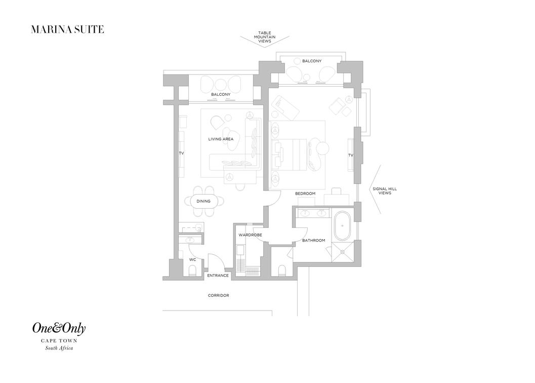 One&Only Cape Town boasts the largest contemporary rooms and suites in the city, characterfully designed with authentic African-inspired interiors. The 7 One Bedroom Marina Mountain Grand Suites (155m2/1,668ft2) offer enhanced exceptional views from a large private balcony of Table Mountain