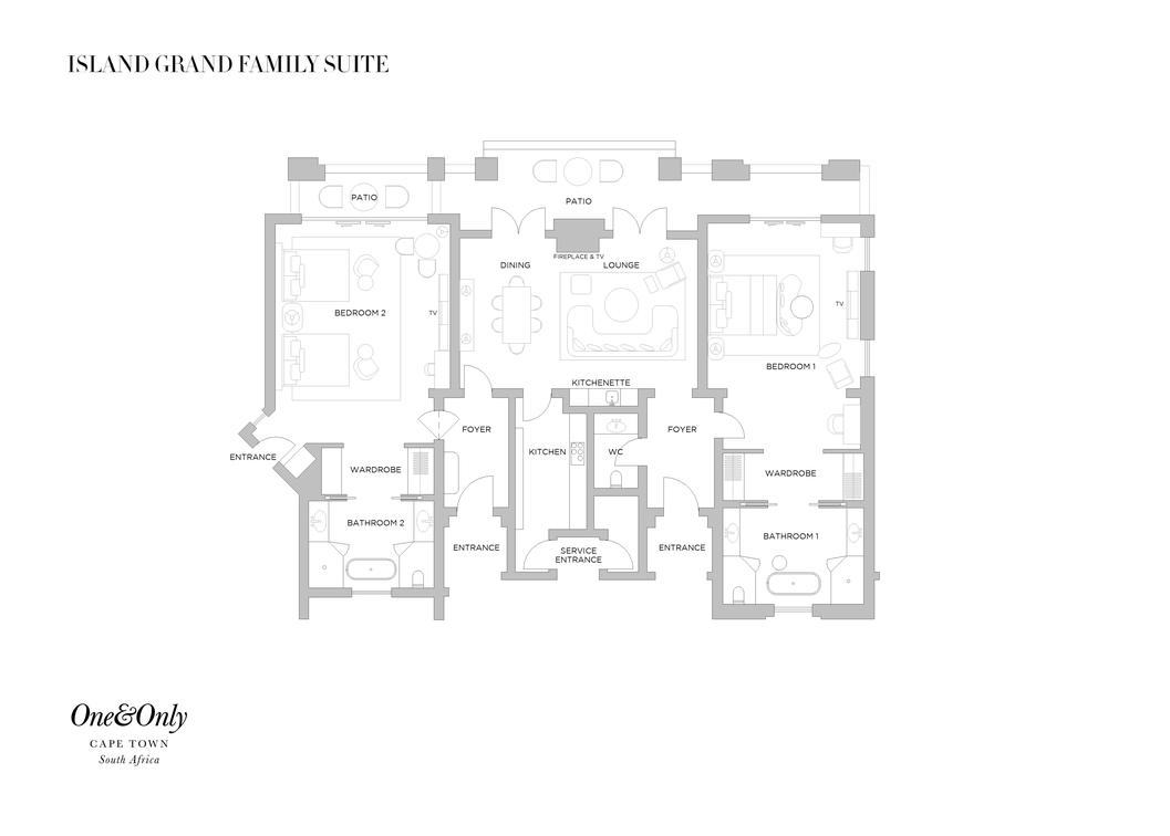 A spacious marble countertop kitchen is ready for use complete with a private service entry. An open, free-flowing dining area couples alongside the living area creating the perfect entertainment space, an indoor fireplace at the ready for the cool Cape evenings. The room’s outdoor private terrace or balcony overlook the marina waterways, an expansive view of the clear waterways in either direction that are perfect for early morning or evening dining. For those wishing to enhance the resort holiday, these rooms are ideal as they surround the 350m2/3,767ft2 infinity-edge pool and are also in close proximity of One&Only Spa Island.