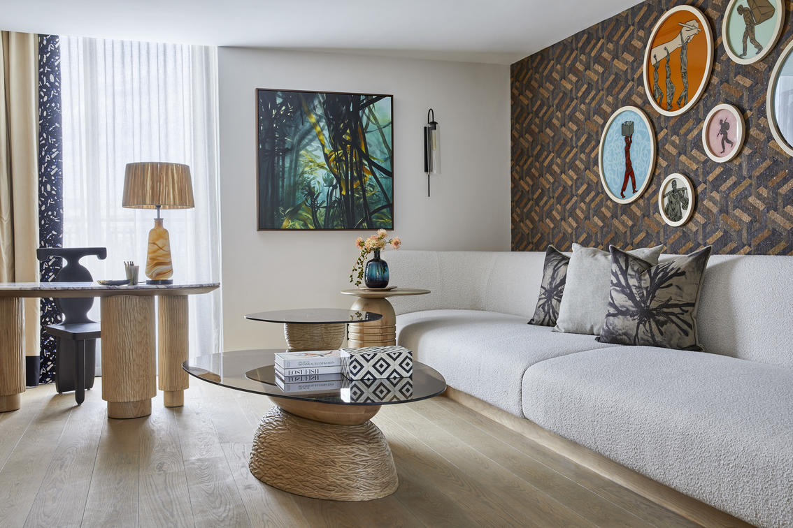 Each suite has also undergone an extensive interior refurbishment, crafted using thoughtful textures and organic materials, working to create not only a space, but a whole experience and story. Enter and be greeted by warm lighting, an earthy colour scheme and a mud cloth adorned entrance, whose fabric inspired by the traditional Mali creates an authentically African welcome. The space is a perfect blend of nature and design, modernity, and tradition.