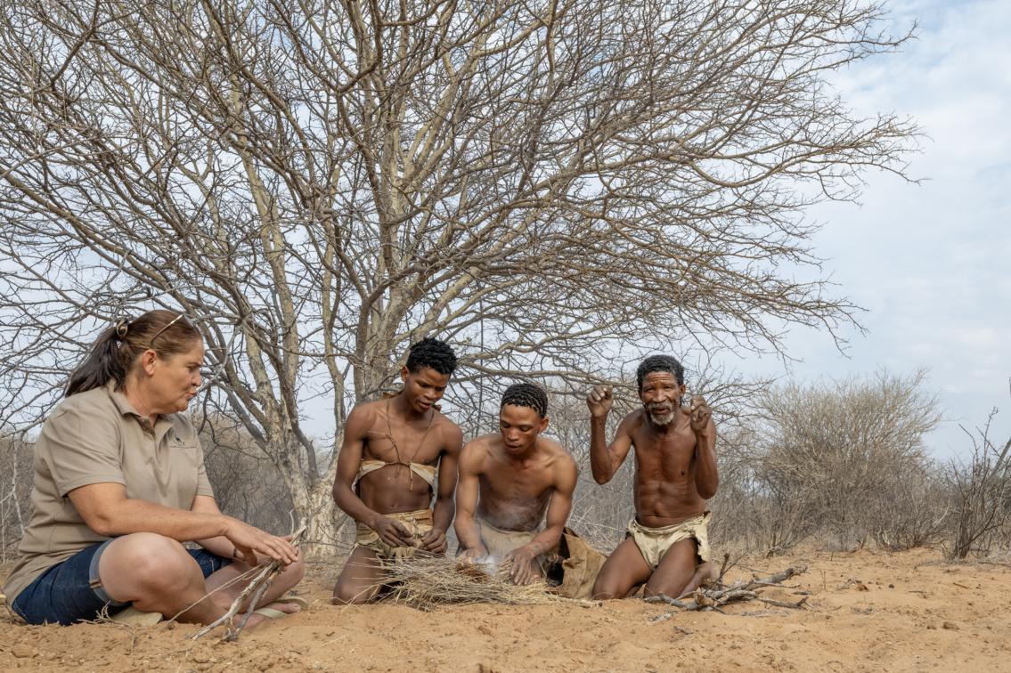 But what makes this experience truly exceptional is not publicity — it is relationship. Neeltjie and her husband Tiaan continue to nurture and protect this connection. Neeltjie speaks Naro fluently, and her father speaks three San languages fluently — something almost unheard of for a Western individual. This is not a surface-level partnership. It is generational, respectful, and deeply rooted.