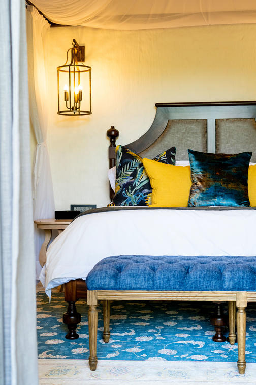 Indulgent king-sized bed with bespoke mosquito net cover.