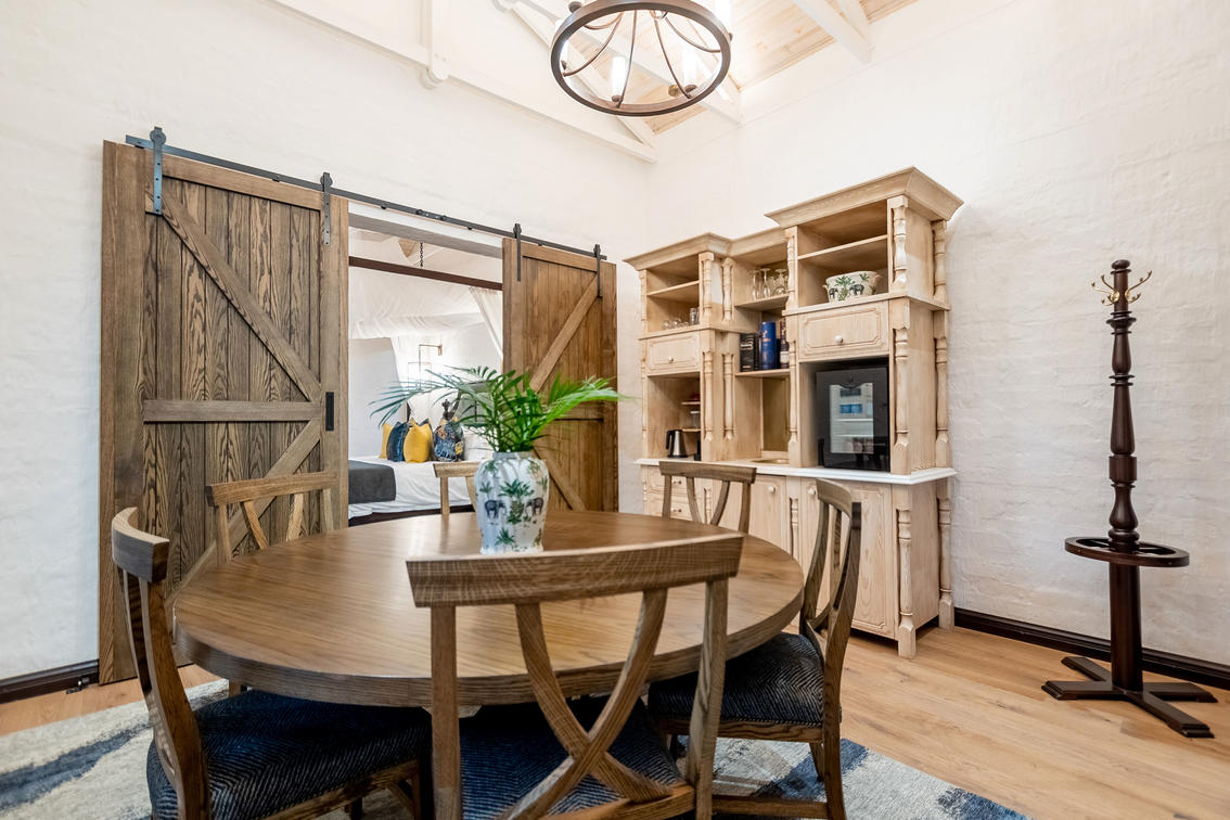 and high, open ceilings, with timber rafters, make for spacious Standard Suites, flooding the