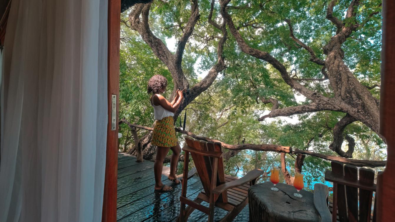 The family chalet is ideal for small families or guests looking for two rooms. It is river-facing, with plenty of shade and animal activity.
