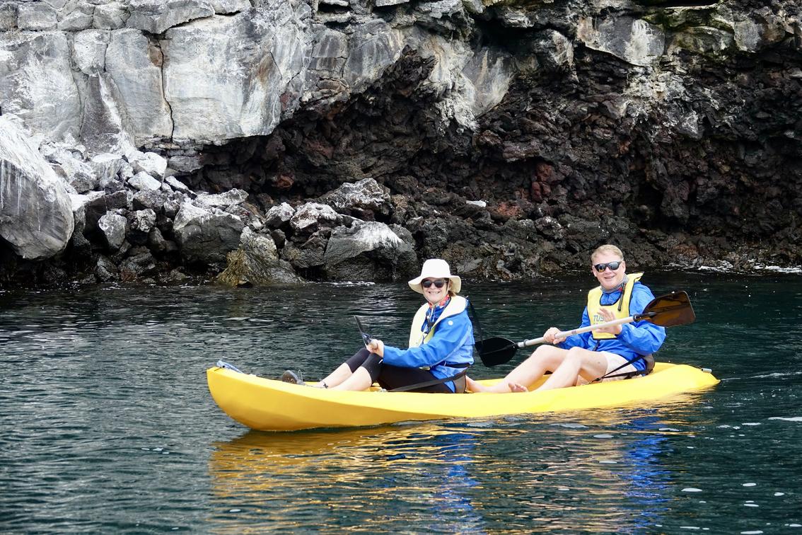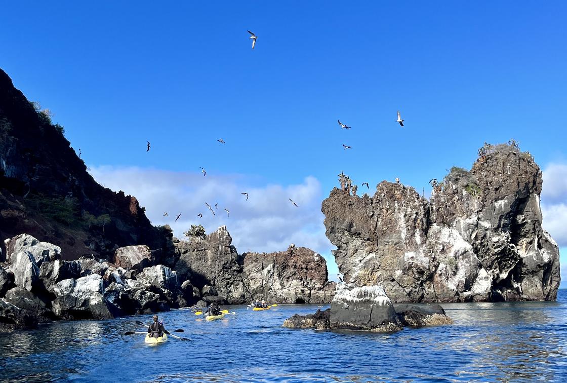 Kayak serenely through the Galapagos archipelago, navigating azure waters alongside volcanic landscapes. Marvel at the unique blend of aquatic and terrestrial life as you cruise past sea lions, marine iguanas, and iconic blue-footed boobies.