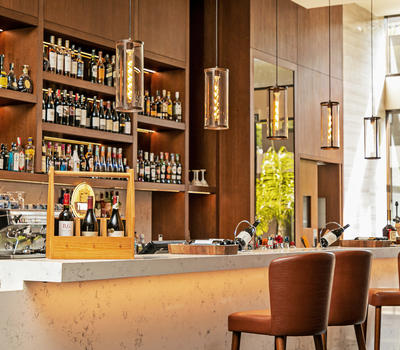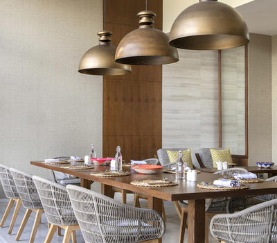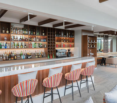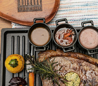 A restaurant that brings to our guests the authentic char grill flavors, a cuisine based on meat but with a big component of both fish and seafood as well. e char grill station as a main attribute of the dining area, providing a unique cooking experience to the clients. e Grill opens for dinners, the mood flows from busy and casual evening time attracting groups of professionals and families alike to a more relaxing and intimate atmosphere at nighttime where couples and groups of friends enjoy dinner together.