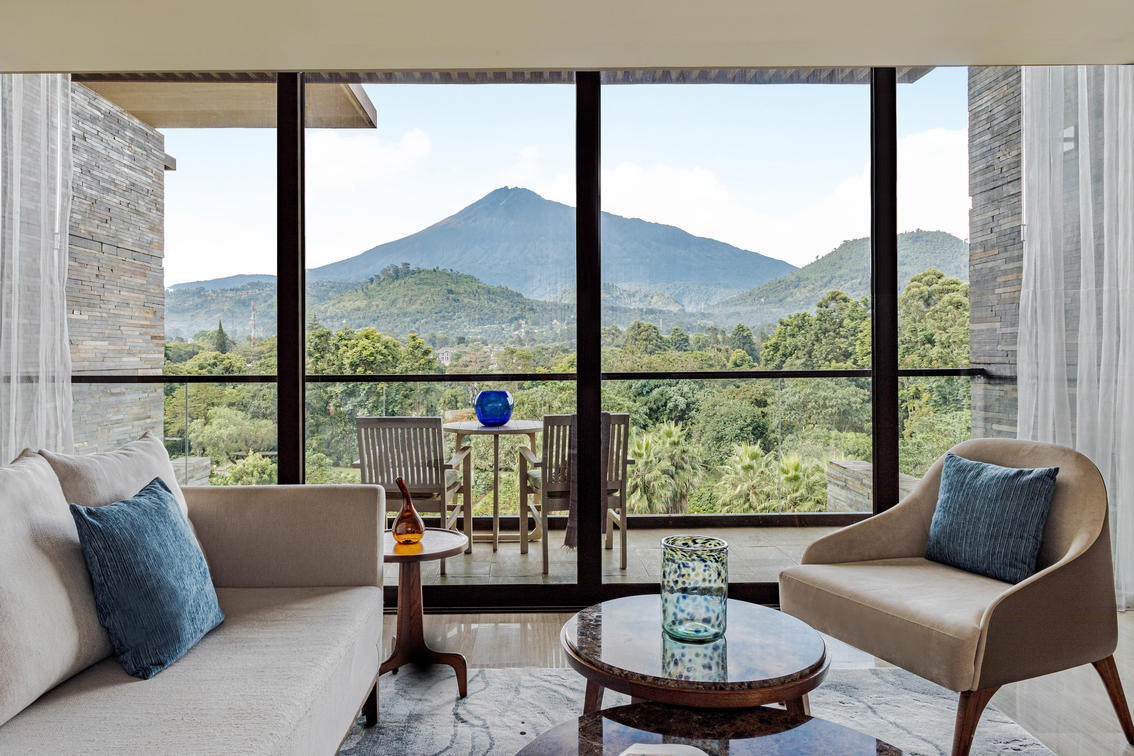 Offers spectacular views over the hotel gardens and Mount Meru. Private balcony with all standard hotel room features