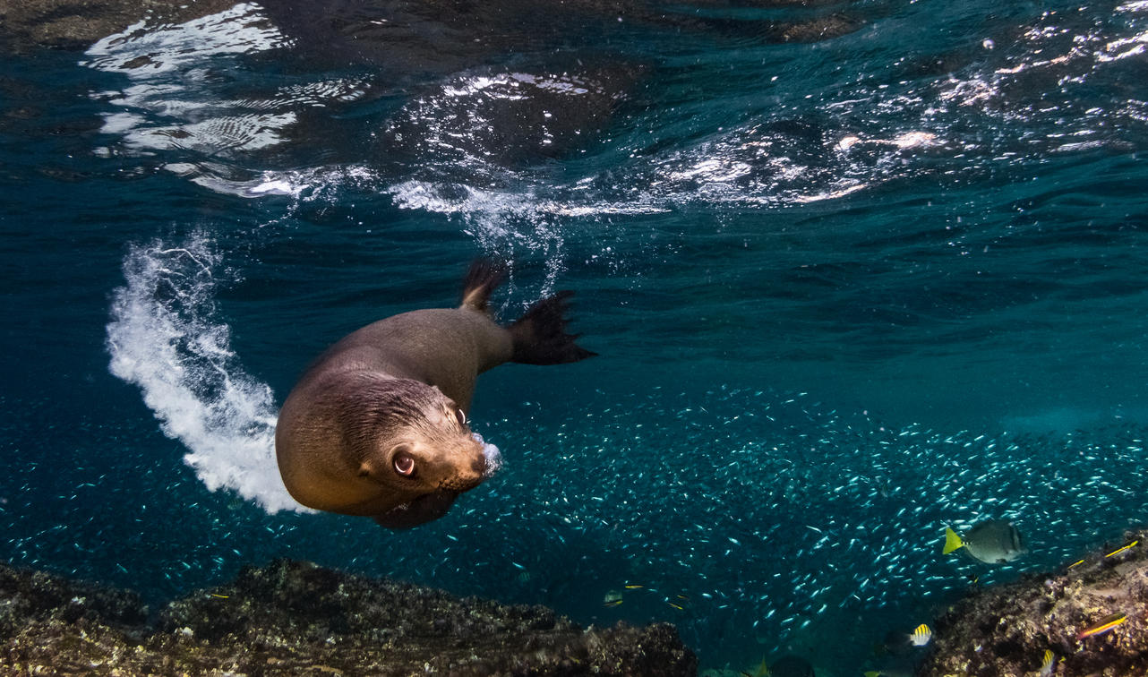 Swimming with sea lion puppies at the permanent sea lion colony of Los Islotes is truly one of life's great joys. These fun-loving marine mammals love playing and interacting with humans, and are always disappointed that we can never keep up a game of tag as long as they can. Getting to the sea lion colony is half the fun, as we regularly see dolphins, whales, mantas, sea turtles, coastal birds and more on the way there and back. Swimming with sea lions is included in the Camp Cecil experience.