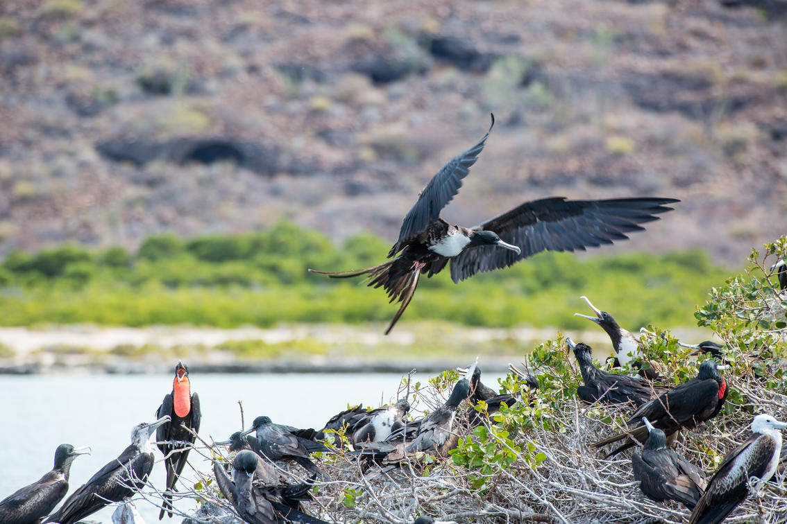 Over 430 bird species have been spotted in Baja California Sur and it is home to six endemic species as well. During our stay at Camp Cecil de la Isla we can visit rookeries for Blue-footed Boobies, Magnificent Frigatebirds, and Great Blue Herons, explore the wondrous array of birdlife found in local mangroves, and at sunset watch the Brown Pelicans, Yellow-footed Gulls, Caspian Terns, Franklin’s Gulls, Bonaparte’s Gulls, Least Terns, Herring Gulls, Snowy Plovers and more score their suppers. It is a wonderful place to observe our feathered friends. Birding is included in the Camp Cecil experience.