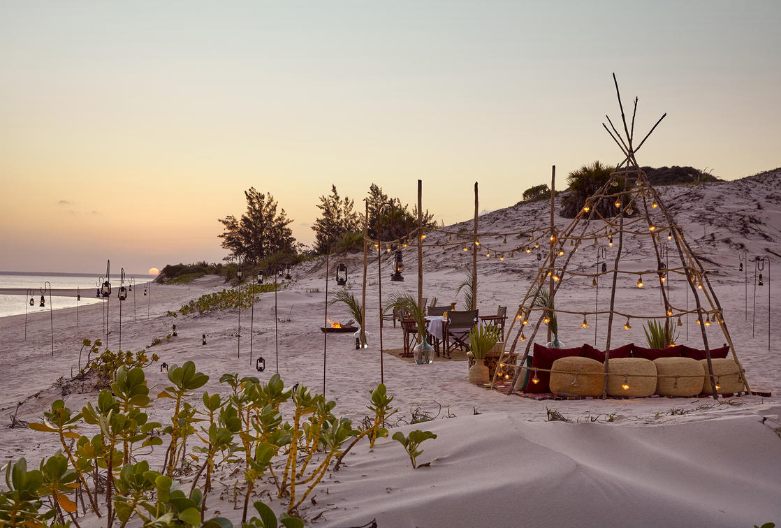 Walk along the Indian Ocean at dusk, and enjoy sunset cocktails on Benguerra Island’s Red Dune.