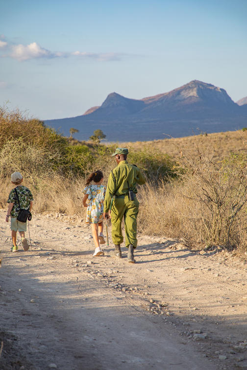 Start your day with a stunning African sunrise. Our 4x4 will take you to a safe area in the wilderness. There, guided by knowledgeable Lumo Conservancy rangers, you'll explore the protected area on foot.
