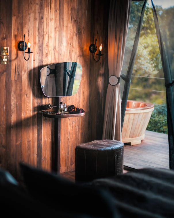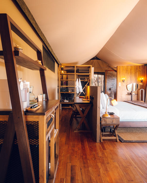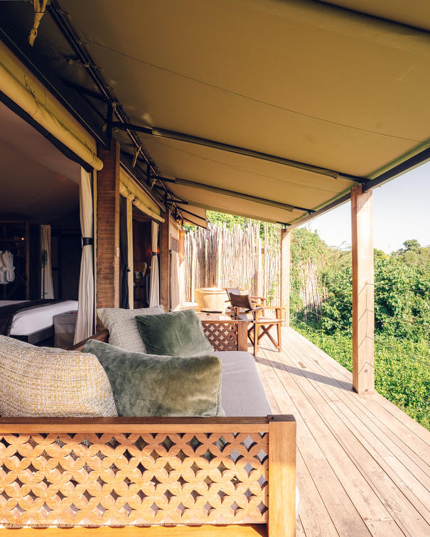 Serene and secluded, our open-plan River Suites are thoughtfully placed on the brink of the wild, amidst the existing ecology. Immerse yourself in the natural environment with unobstructed views of the river, forest, and expansive savanna from every corner of the spacious room.