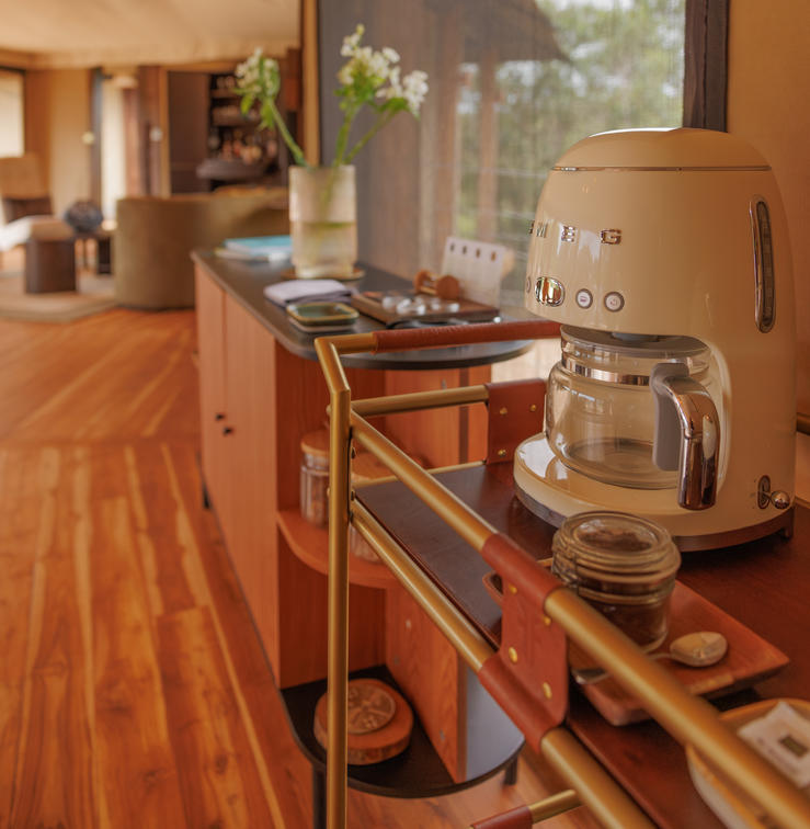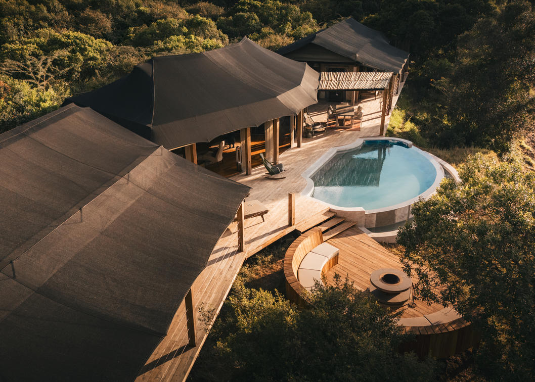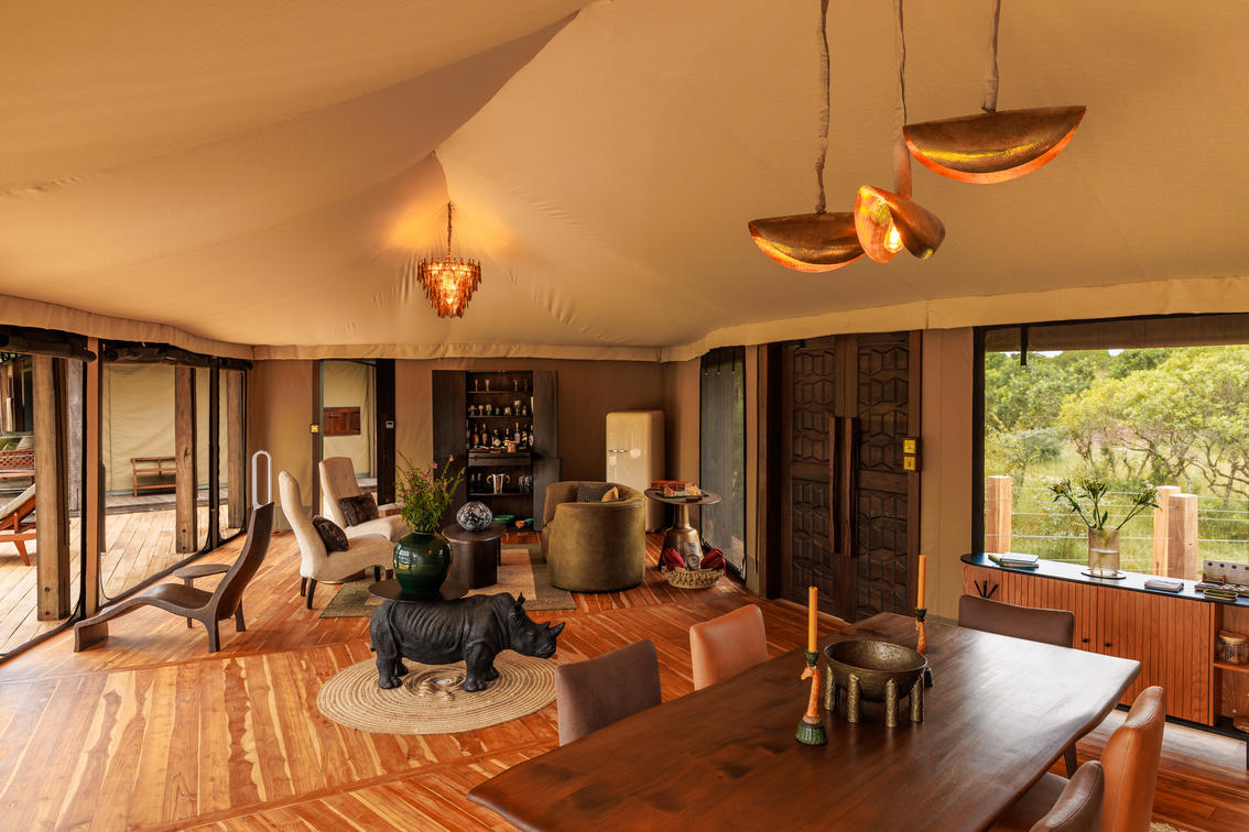 The Villa Suite comprises two River Suites around a central core that afford unobstructed views of the river, forest, and savanna. From the lounge to the indoor and outdoor dining areas, private fireside deck, private infinity pool, and fully stocked bar and fridge, every space has been carefully crafted to create lifelong safari memories.