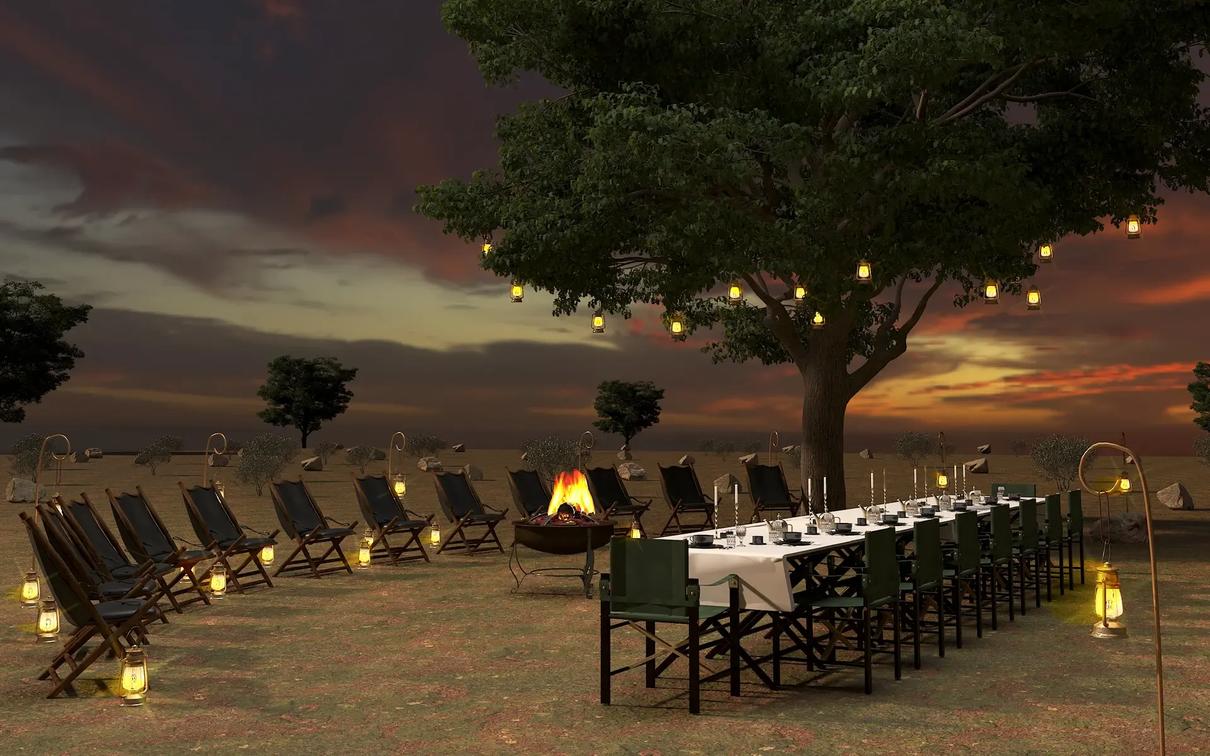 Experience dining in the wild with a delicious meal under the African sky.