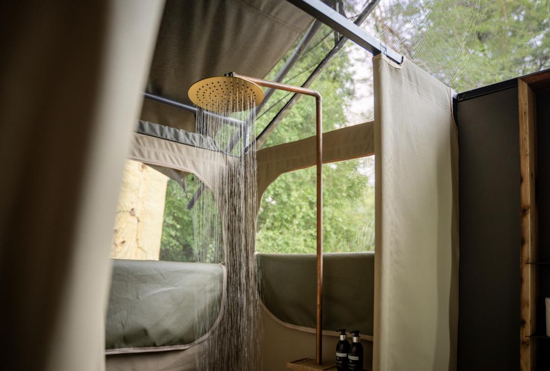 Chicari Camp offers ten thoughtfully designed canvas tents, including eight safari tents and two unique treehide tents. The tents provide spacious interiors with cosy beds, solar-powered lighting, and private en-suite bathrooms, ensuring a comfortable retreat after a day of exploration. The two tree hide tents are at the base of a wooden tree hide and share a spacious deck, making them an ideal choice for two couples or a family travelling together. All tents offer wonderful views of the Chicari pan, and are connected by raised wooden walkways, creating a seamless flow through the camp while ensuring privacy and a close connection to nature.