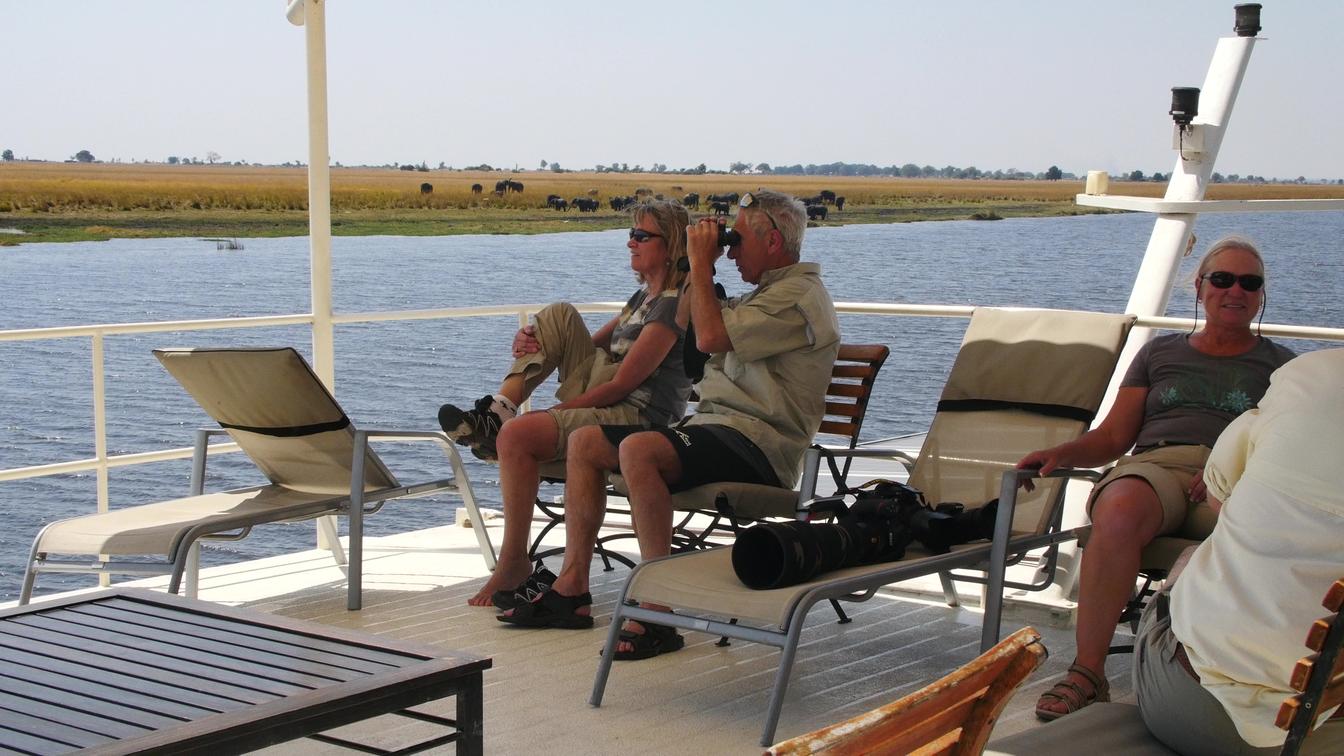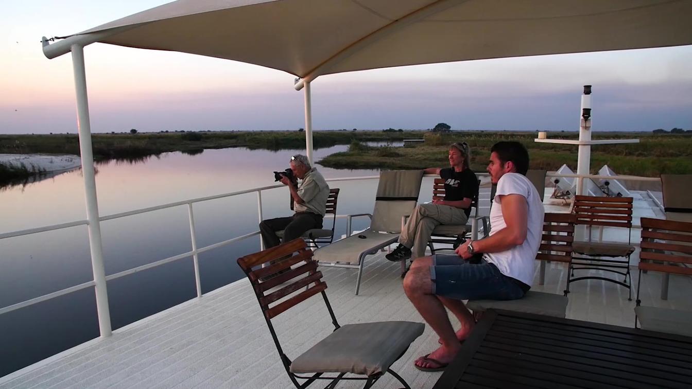 The Pangolin Voyager relocates to a different mooring each day along the river and the sundeck is a great place to enjoy the cruise.