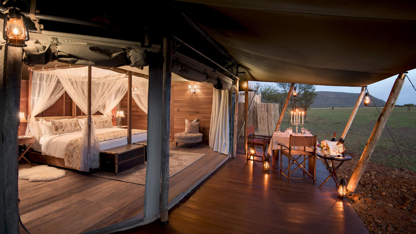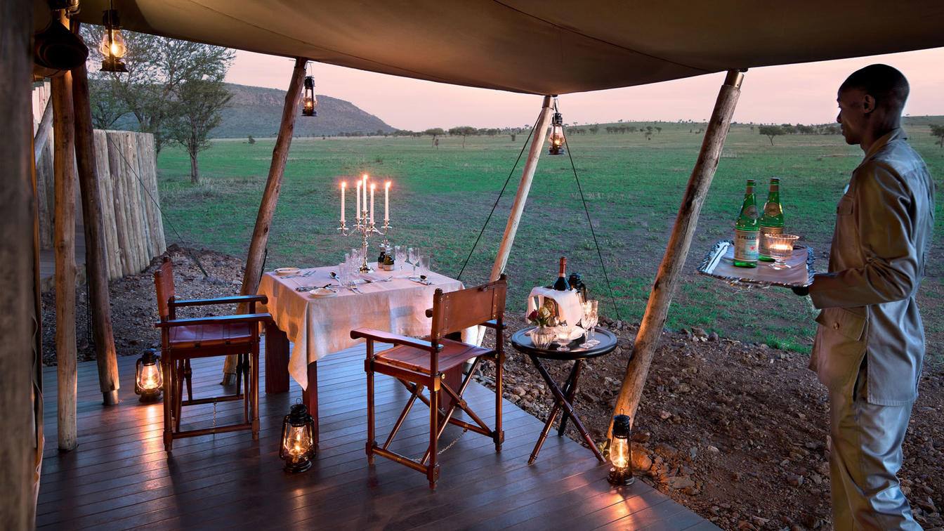 Witness the awe-inspiring beauty of the Serengeti as the sun gracefully sets, casting a breathtaking display of colors across the horizon. Raise a toast to the stunning views that surround you, enveloped by the untouched wilderness.