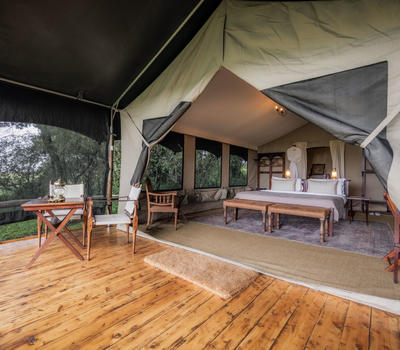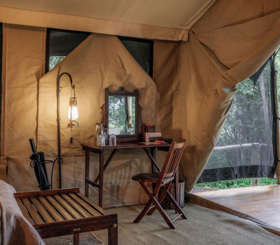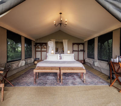 The tents are set underneath a grove of fig and Elephant Pepper Trees and are spaced out to ensure privacy. From your personal verandah or hammock you can watch wildlife roam on the savannah plains…