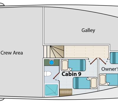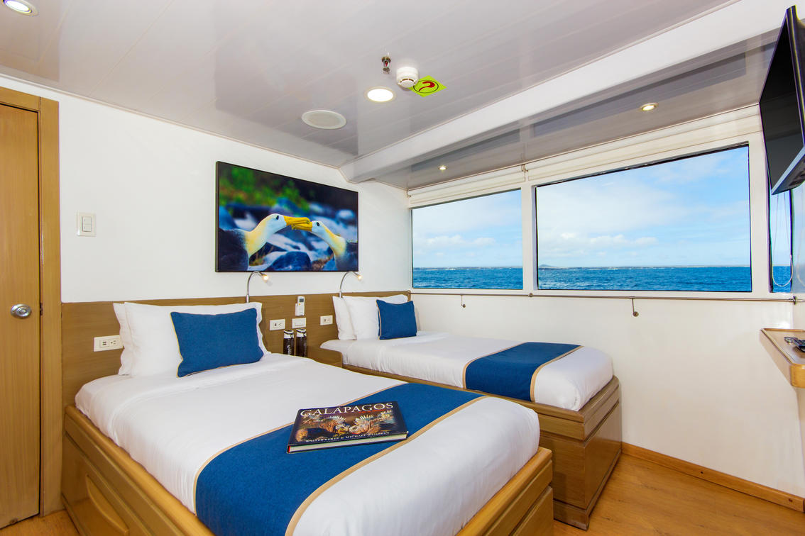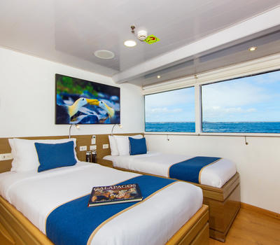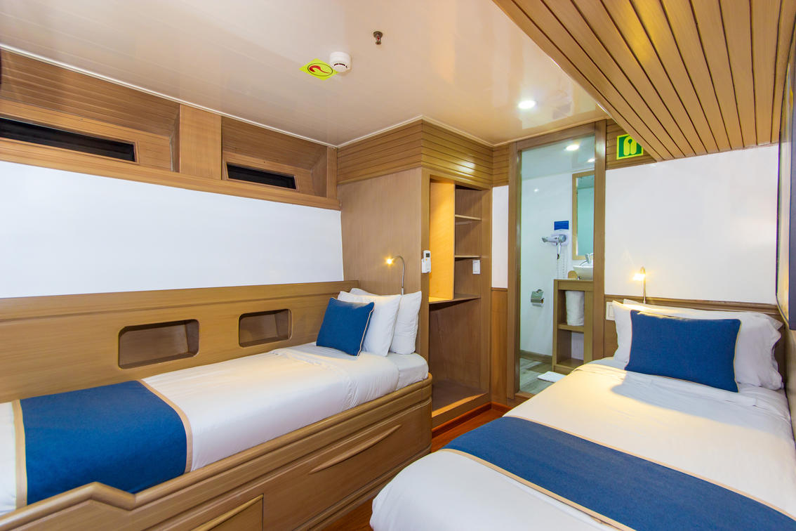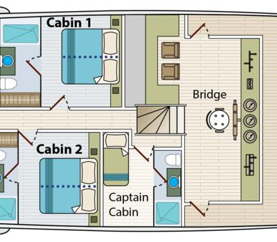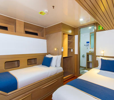 These cabins include 6 upper deck cabins and 2 main deck cabins which offer the flexibility of including one or two beds. These cabins also include individual climate control, 2 USB plugs and a TV. An en-suite bathroom and a hairdryer are also featured in this cabin type.