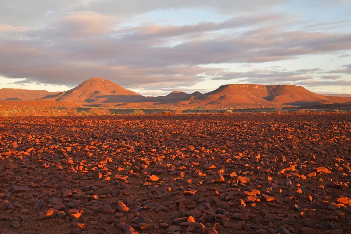 Meet at Palmwag Lodge on the Uinab River at the normal pickup time and point for Etendeka Mountain Camp. Hand your luggage over to the driver who will safely deliver your luggage to the River Camp. Start your walk from Palmwag Lodge into the Etendeka Concession for approximately 2 to 3 hours to your 1st overnight camp. The scenery is incredible as you access the concession on foot and look out onto the pristine rocky plains set against the Namibian sky. Your experienced guide will give you a sense of what awaits as he identifies desert plants and trees. Keen birders and photographers should have their binoculars and cameras on hand.
