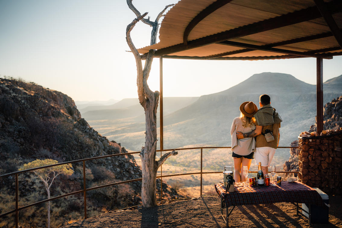 • Guests who have booked the two-night experience; will enjoy a short morning walk or transfer down to Etendeka Mountain Camp and get the scenic nature drive back to Palmwag Lodge or opt to stay an additional night at Etendeka Mountain Camp.