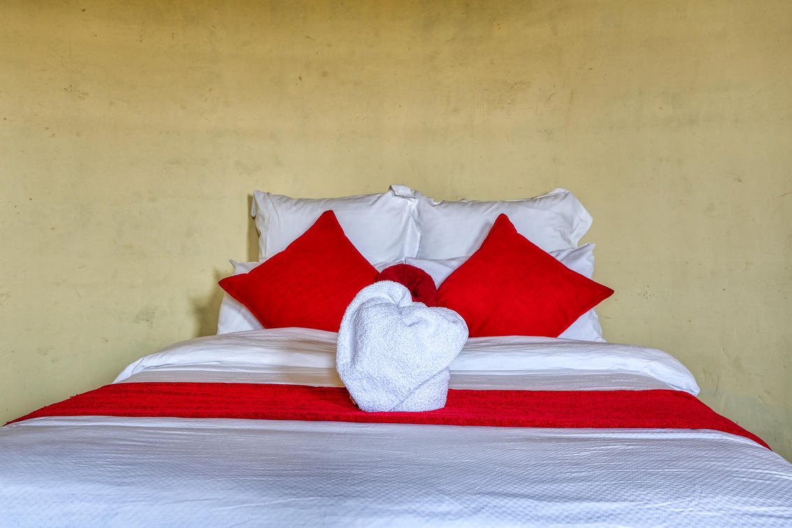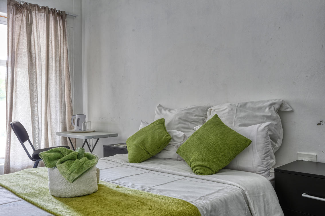 Our standard rooms include a double bed, air conditioning, mini fridge, table and chairs, warm water, a shower and a toilet.