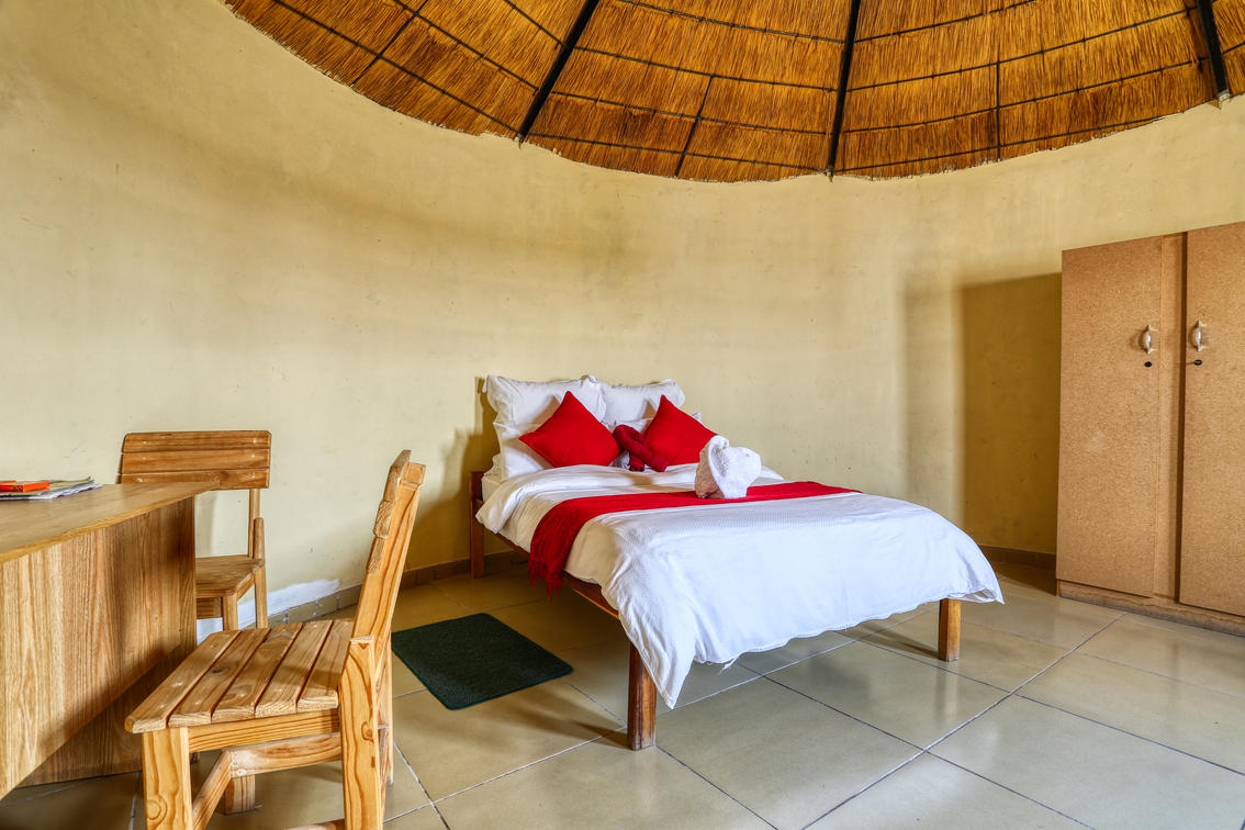 Our economy bungalows include two single beds, a fan, table and chairs, cold water, a shower and a toilet.