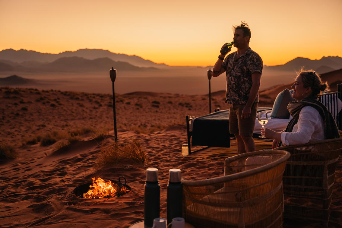 The Namib Desert sets the stage for an extraordinary dining location. Enjoy your sleep out with a simple dinner hamper under the vast African sky and wake up to a sunrise coffee with the dunes as your backdrop.