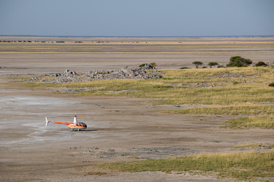 A helicopter scenic flight offers an unparalleled opportunity to truly grasp the vastness of the Makgadikgadi Pans wilderness.