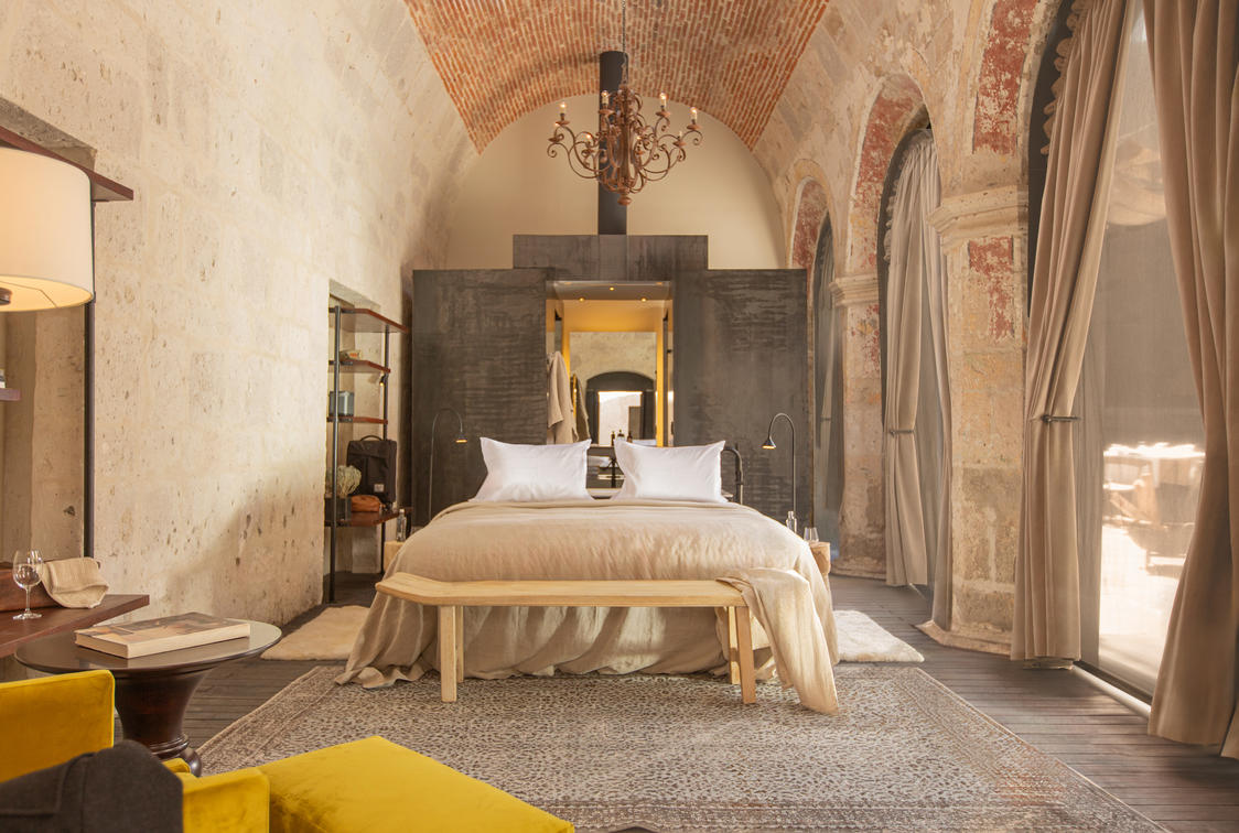 An intimate and cosy refuge that offers all the essentials while resembling the authentic dimensions and feel of the original monk’s chambers, updated with modern comforts.