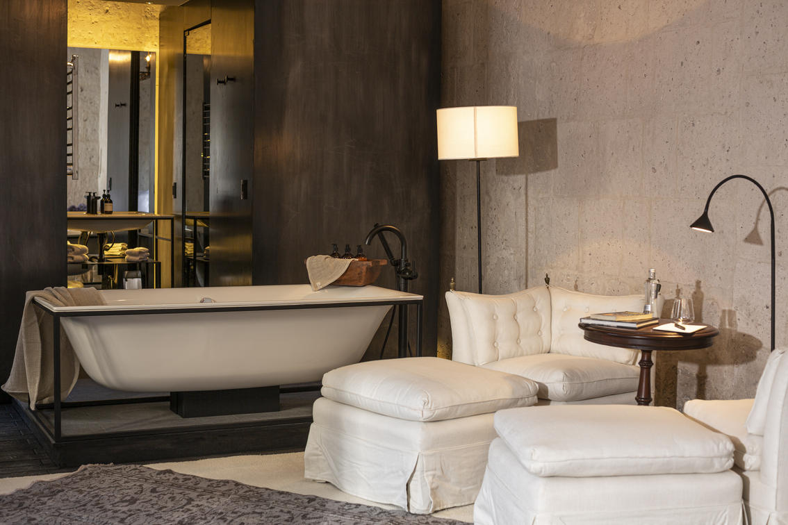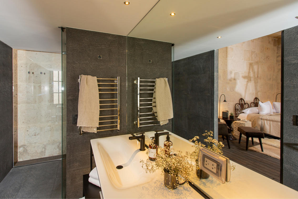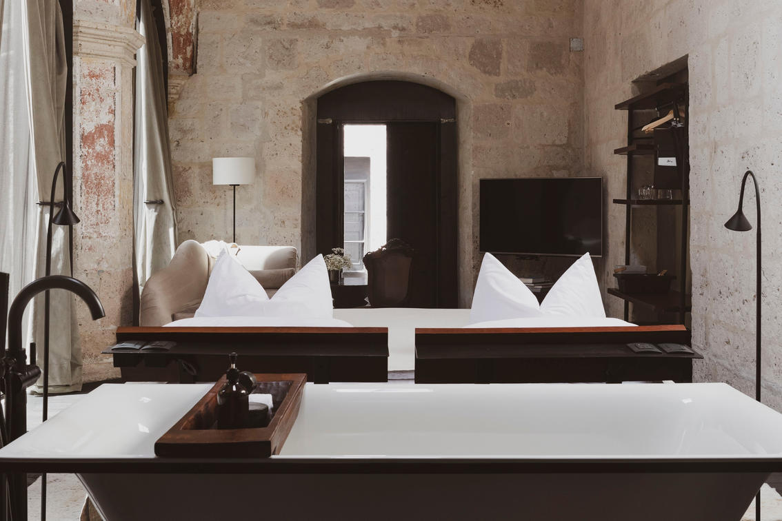 Magnificent and spacious, with original high-vaulted ceilings that recall ancient Parador times. Each boasts a stand-alone bathtub and a private sitting area.