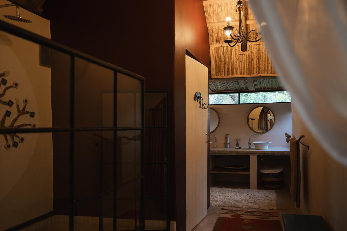 Riverside Charm for Families or Couples - perched right on the edge of the Zambezi, Jacana River Chalet is an open-fronted haven that effortlessly blends natural beauty with thoughtful comfort. The centerpiece of the elegant bathroom is a striking mosaic tree, complemented by a double shower and double vanity, creating a space that’s both artistic and indulgent. The chalet features a king-sized bed set on rich, old teak flooring, creating a warm and inviting atmosphere. For families, up to two single beds can be added, allowing children to share the space comfortably with their parents — an ideal setup for two adults and two children aged 10–17 years. Windows are screened with gauze to welcome in light, air, and uninterrupted river views, with roll-down blinds provided for privacy when needed. Sleeps: Up to 4 guests Ideal for: 2 adults + 2 children (ages 10–17) Highlights: Open-fronted design, river views, artistic mosaic bathroom, family-friendly layout